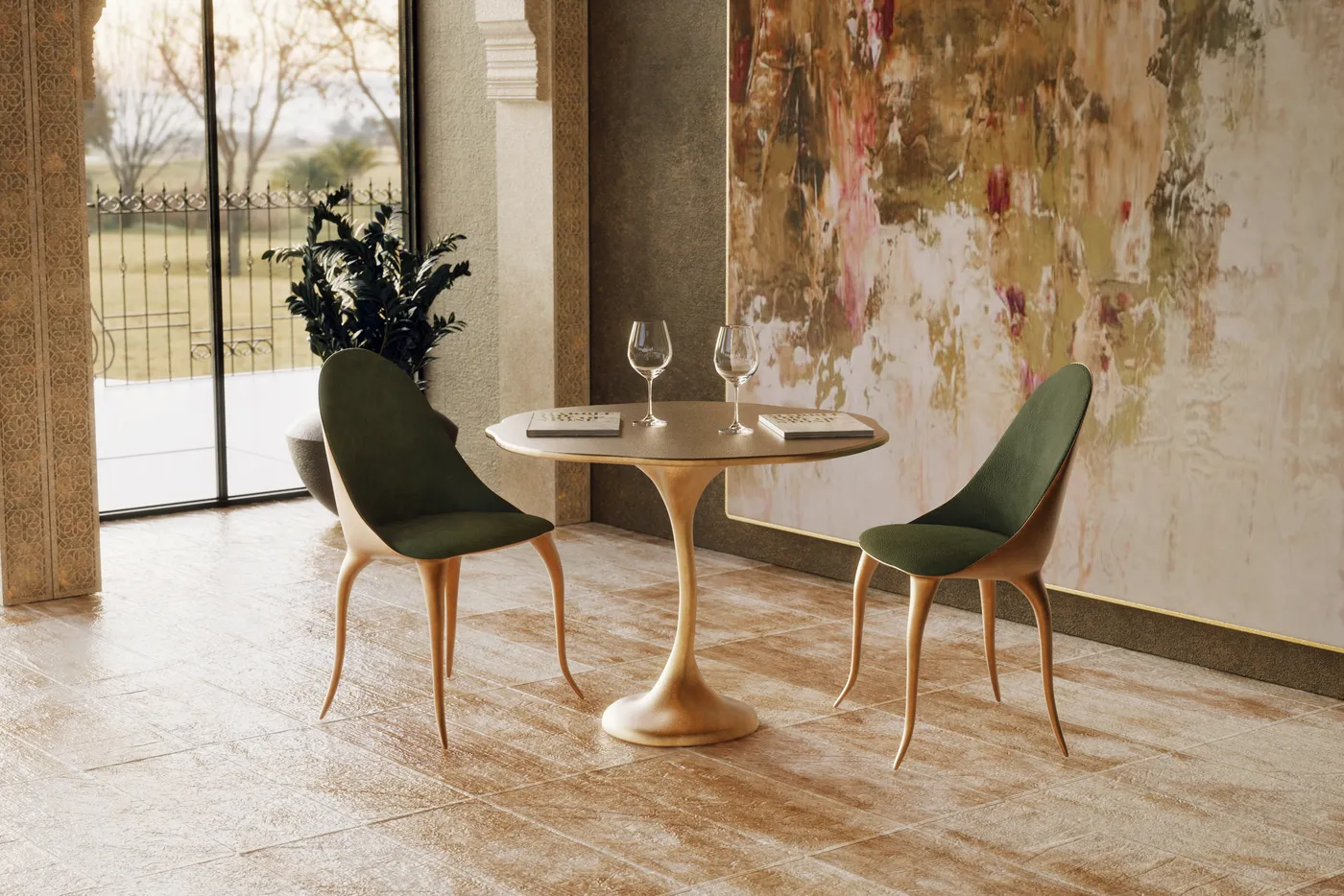 Очаровательный центральный элемент, который привнесет красоту природы в вашу обеденную зону. Благодаря органической форме столешницы и основанию, которое замысловато напоминает разветвленную ветку дерева, этот стол демонстрирует гармоничное сочетание артистизма и изысканности. Тщательно отделанное в эксклюзивном золотом цвете Karpa, основание источает роскошную ауру, которая добавляет нотку роскоши к вашему обеденному опыту. Органическая форма столешницы усиливает его визуальную привлекательность, создавая уникальное и привлекательное пространство для памятных обедов и встреч. Погрузитесь в очаровательный мир Ivy, где элегантность природы встречается с изысканным дизайном.