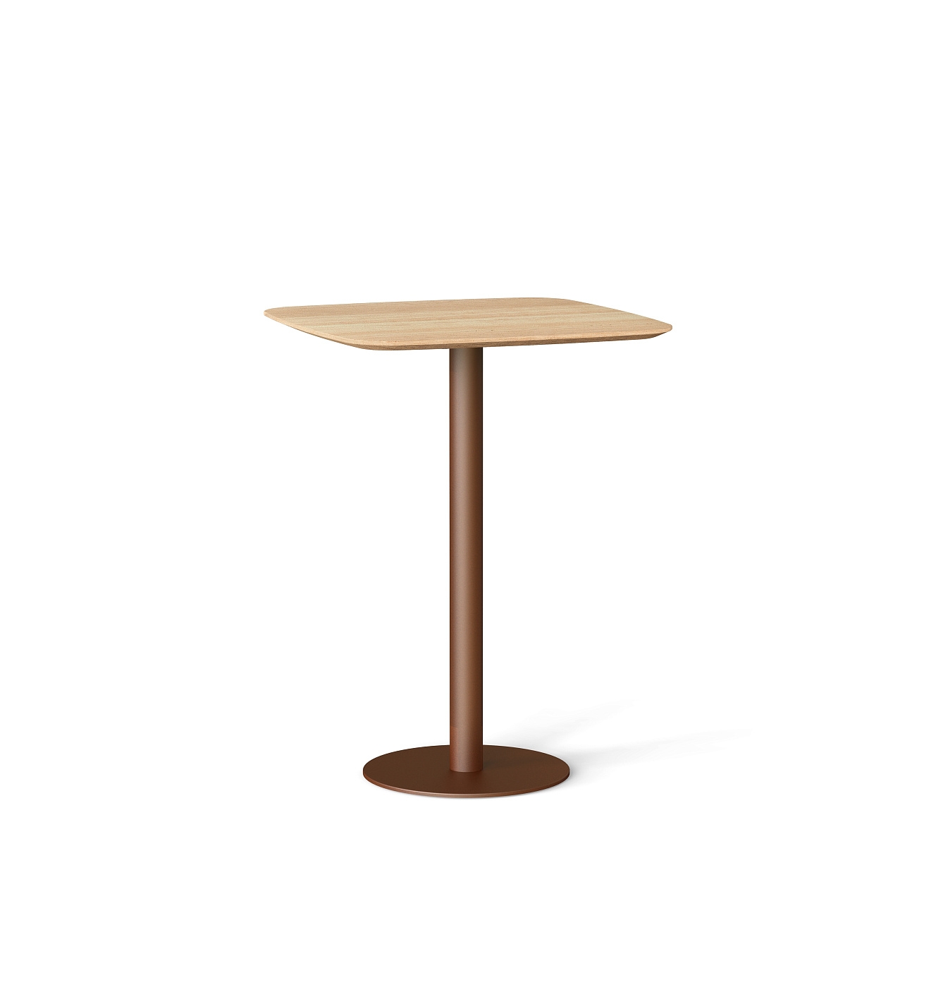Столешница из массива европейского дуба с сечением 21 мм. Конструкция изготовлена из алюминиевой трубки, с покрытием полиэфирной порошковой краской. Коллекция также доступна в лакированном исполнении (МДФ) и в европейской дубовой фанере.