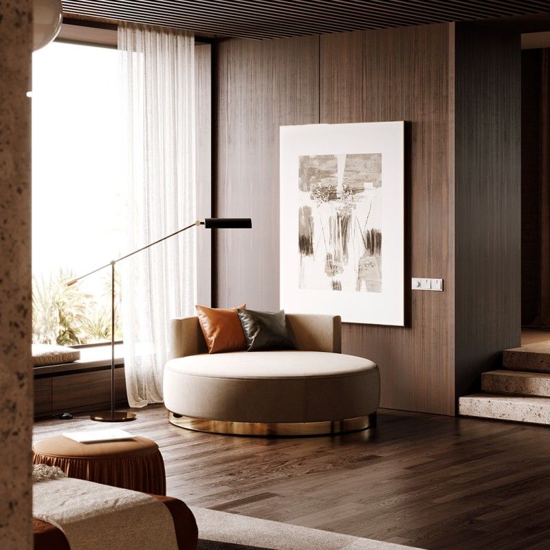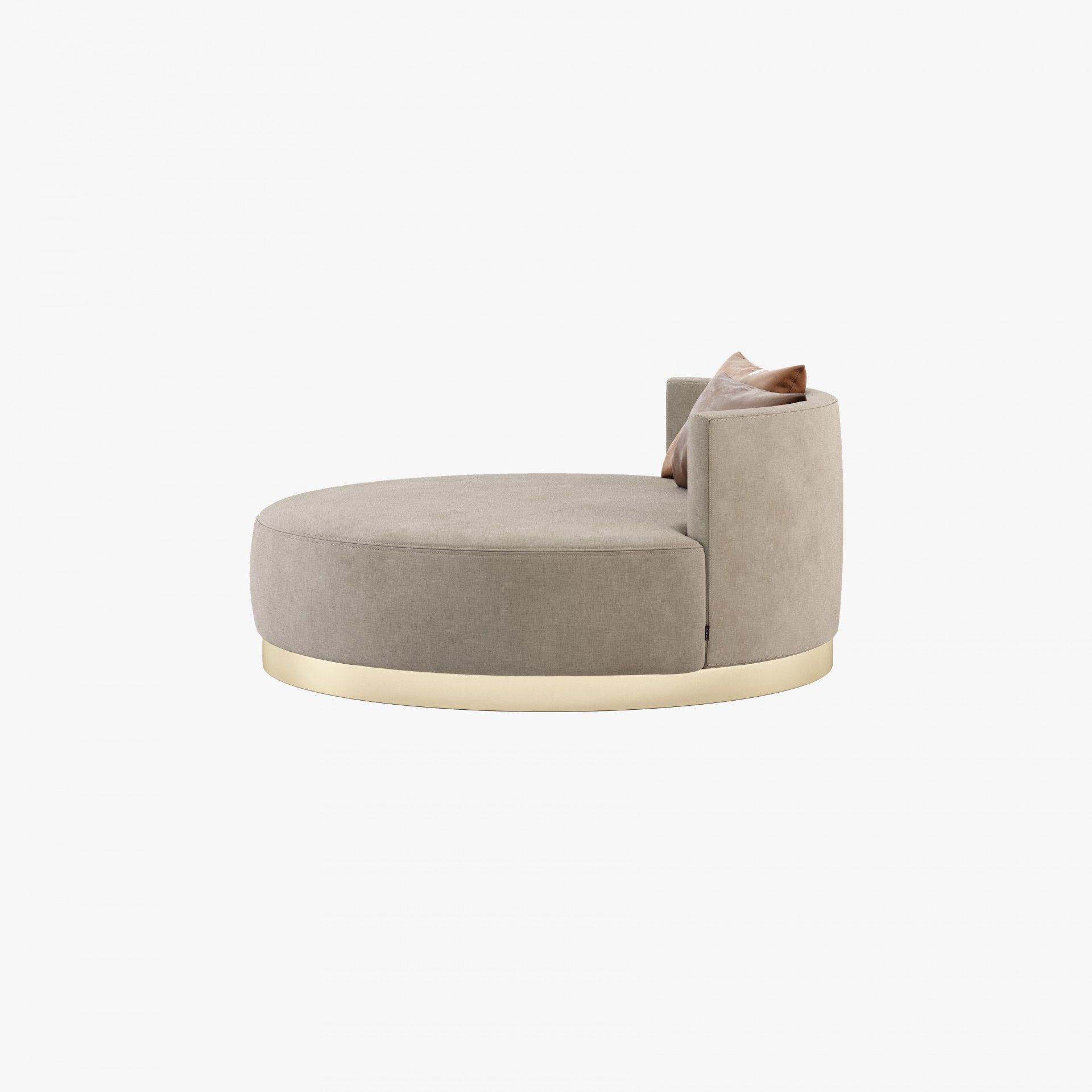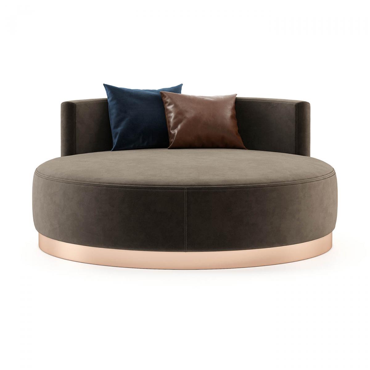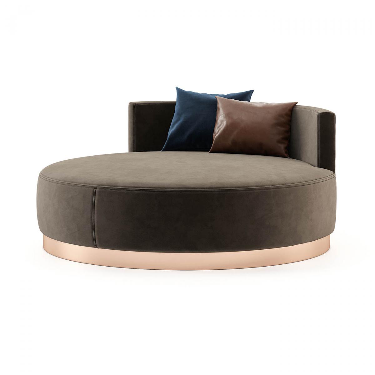 Scarlet-это круглый металлический шезлонг с небольшой спинкой, который отличает эту вещь от простого пуфа, позволяя украсить ее подушками и дополнительным комфортом для вашей гостиной или спальни.