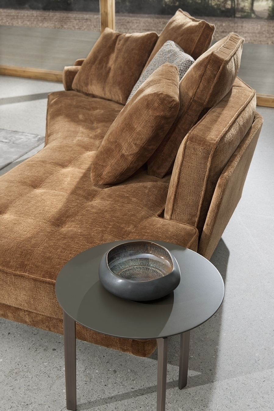 Vermont сочетает в себе классическое сиденье на пуговицах в традиционном стиле с современным элегантным дизайном. Благодаря использованию прочных ножек в этом изящном линейном дизайне сидений достигается плавающий эффект. Для всей коллекции характерно непрерывное расположение сидений в классическом стиле с пуговицами, обрамленное кантом, который ограничивает базовый формат. Непрерывное сиденье позволяет использовать пространство для сидения в неформальной обстановке, где удобные квадратные подушки опираются на подушки спинки, все из которых имеют кант, подчеркивающий их формы. Система сидений состоит из множества характерных элементов, таких как шезлонг, и может использоваться как в качестве отдельных геометрических элементов, так и в различных комбинациях для создания привлекательных решений