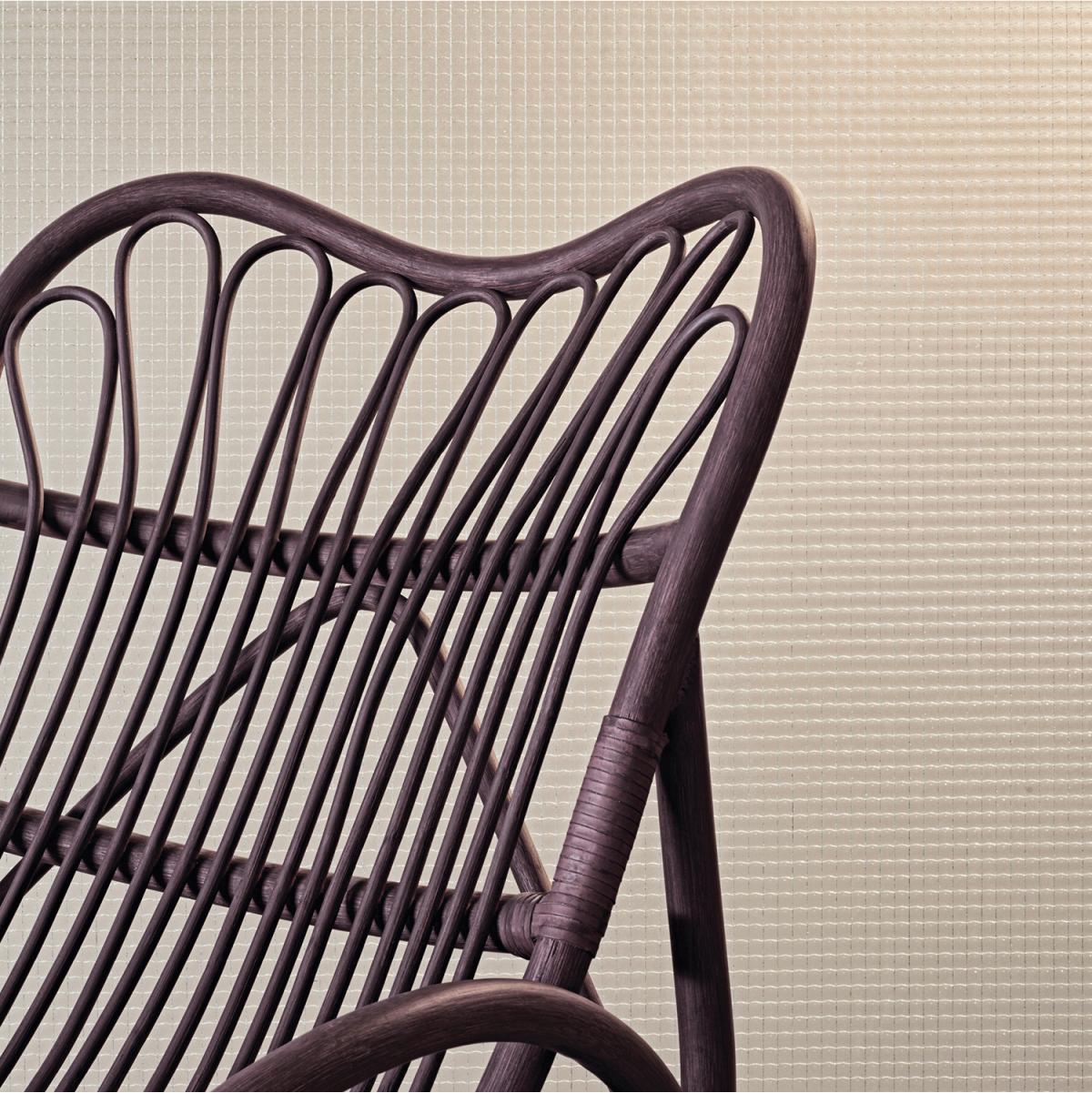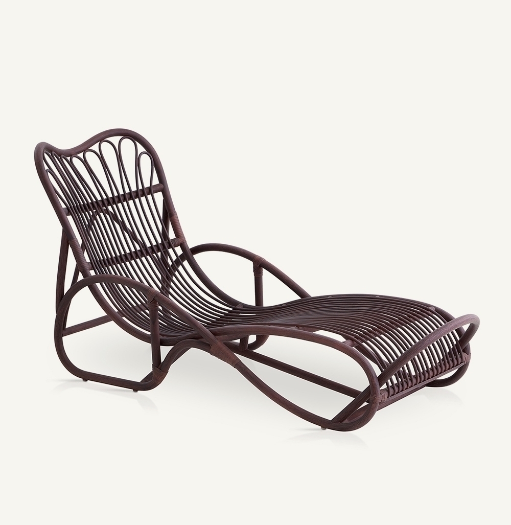 Каркас ротангового шезлонга Reposo изготовлен из мощных стеблей толщиной 32 мм. Спинка и сиденье оплетены ротангом 10 мм в диаметре. Материал очищен и окрашен в один из фирменных оттенков: можно заказать шезлонг в натуральном или ярком цвете, что позволит сделать его доминантой в интерьере.