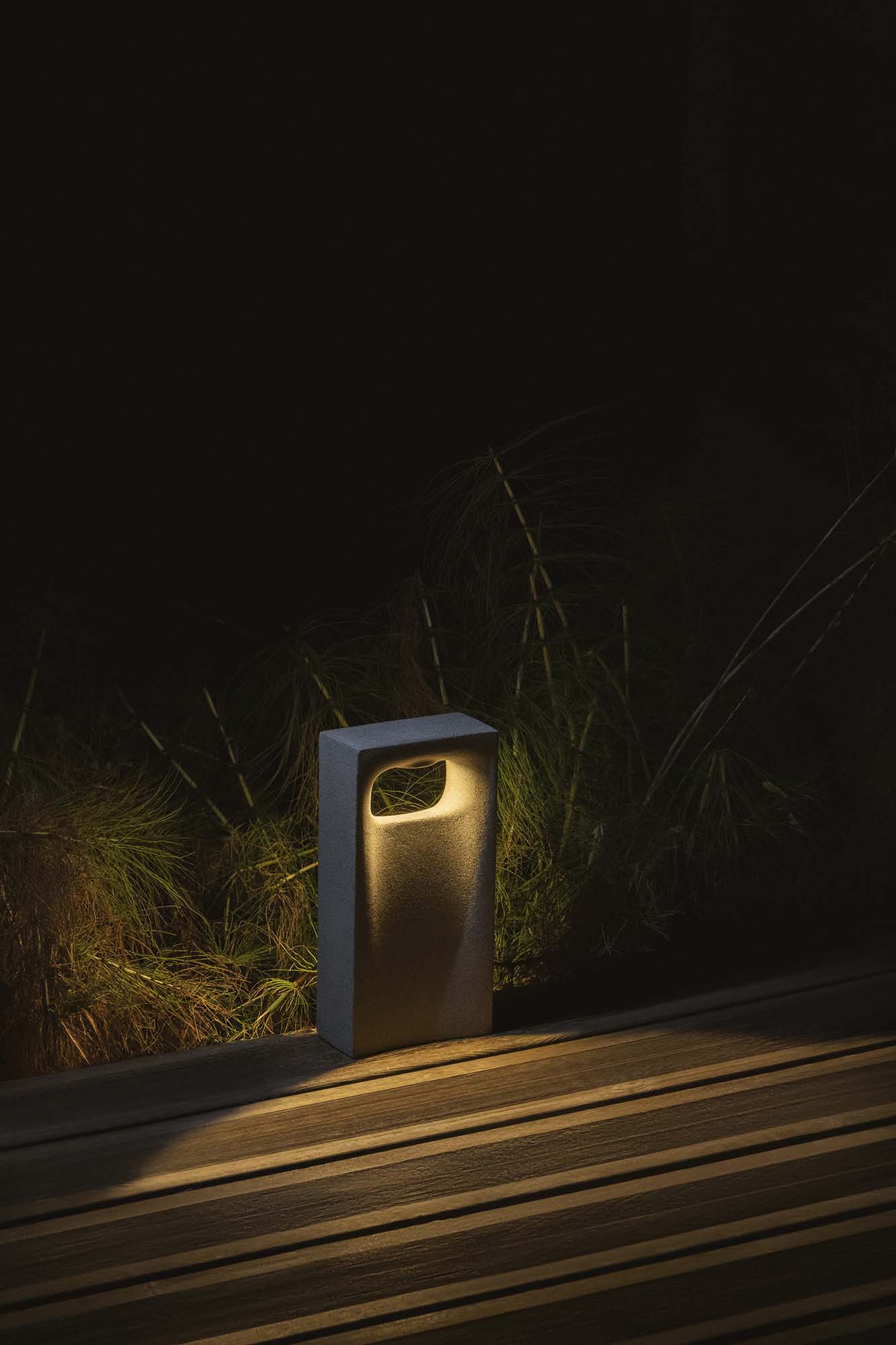 GLINT — это бетонный столбик с минималистичным дизайном, обеспечивающий двунаправленное освещение, идеально подходящий для создания приятной атмосферы на открытом воздухе. Его прочная и простая конструкция легко вписывается в любое окружение, обеспечивая функциональное и декоративное освещение, идеально подходящее для подсветки проходов или создания мягких световых эффектов на открытых пространствах.