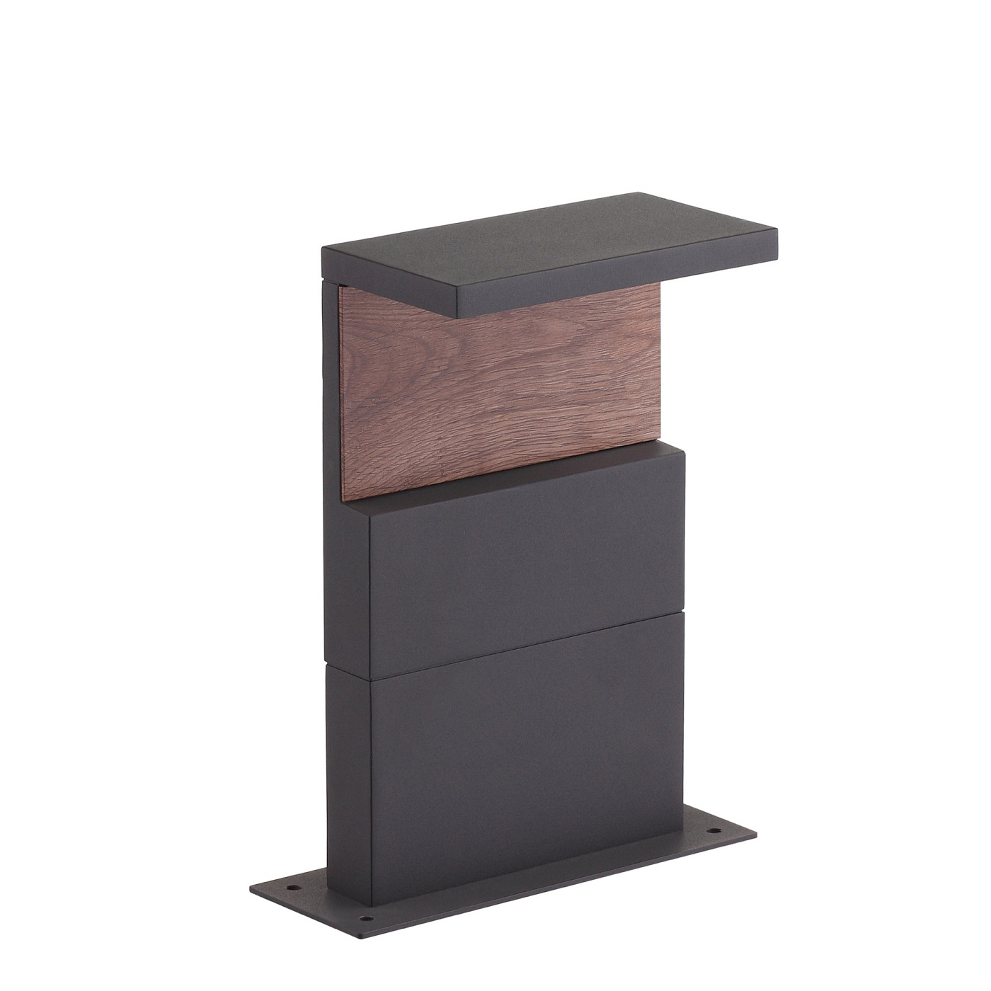 Изысканный уличный светильник Ruka. Осветительный элемент встроен в конструкцию и не требует приобретения дополнительных лампочек. Светильник выполнен из пластика и алюминия. Основным цветом товара является деревянный, тёмно-серый и белый.