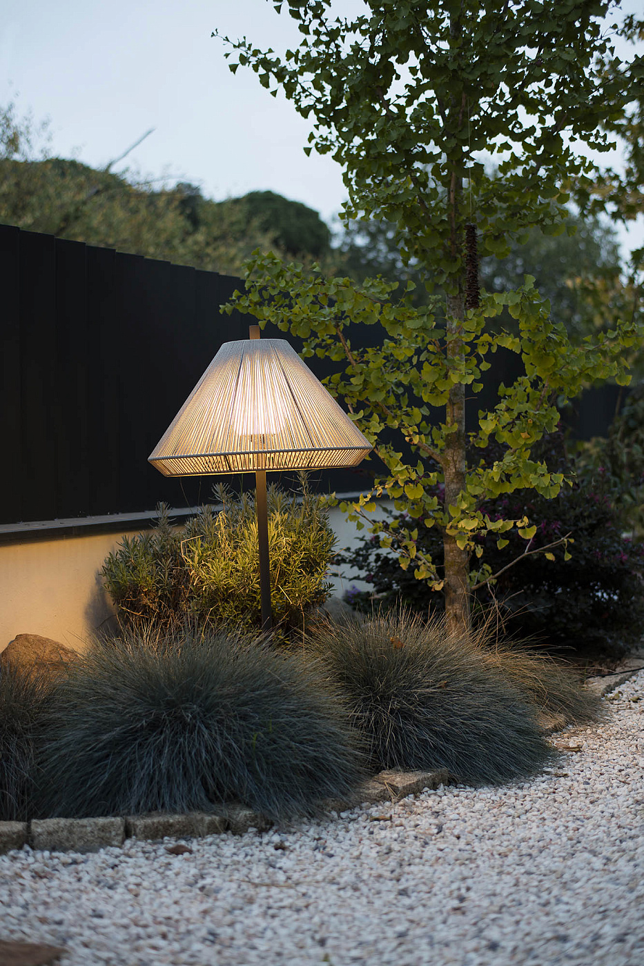 SAIGON — это набор дизайнерских светильников Nahtrang для наружного освещения. Он характеризуется простотой и чистым способом. Это колос бежевого оттенка высотой 1м. Абажур сделан из веревки, которая пропускает свет, создавая красивый световой эффект.