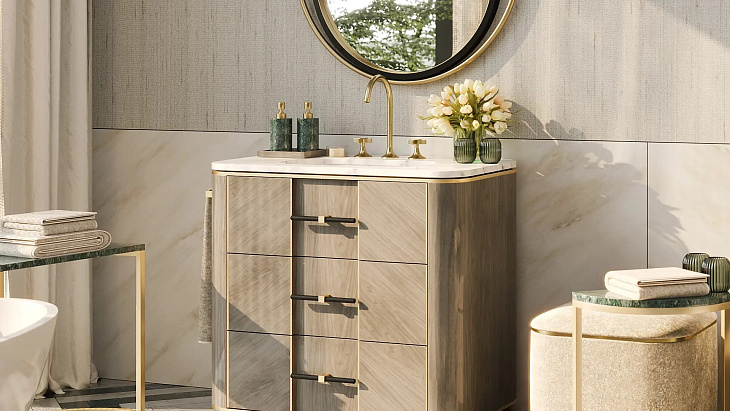 Являясь эстетическим продолжением нашей коллекции мебели ASHI, туалетный столик наполнен индивидуальностью. Выполненный в форме изогнутого куба, он оснащен тремя выдвижными ящиками, обеспечивающими удобное хранение ваших косметических принадлежностей.