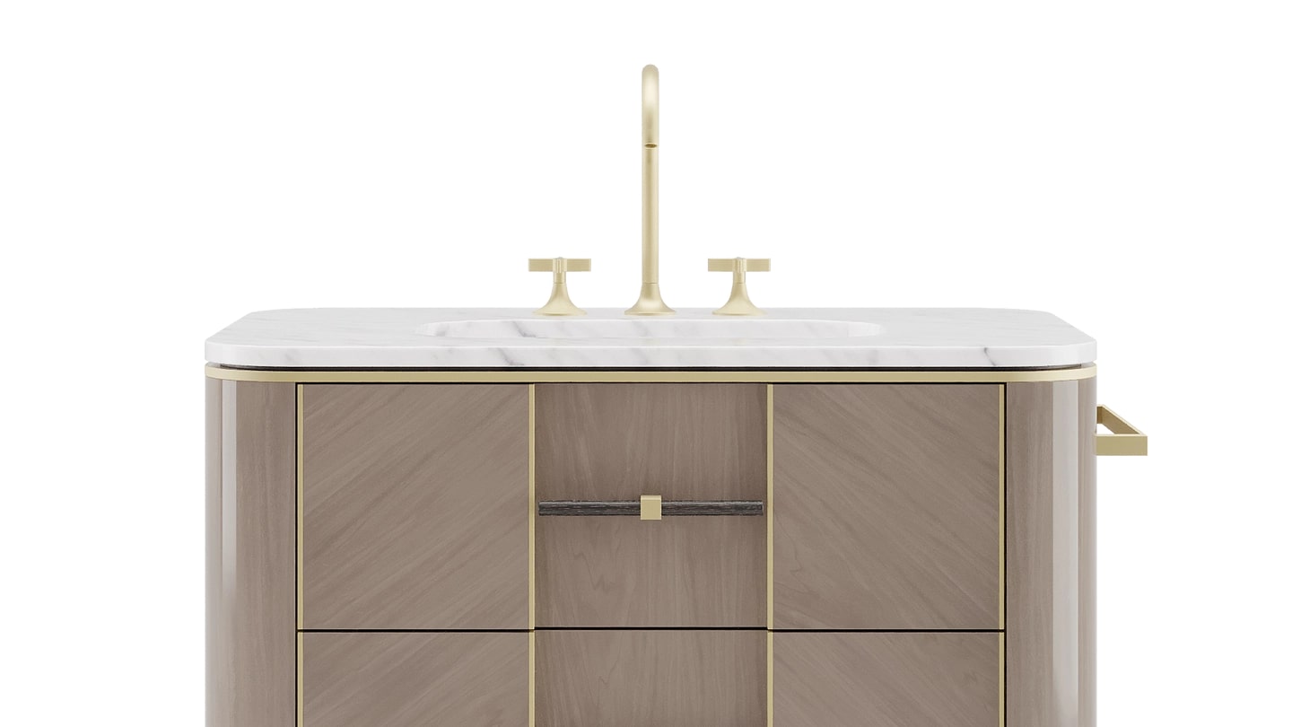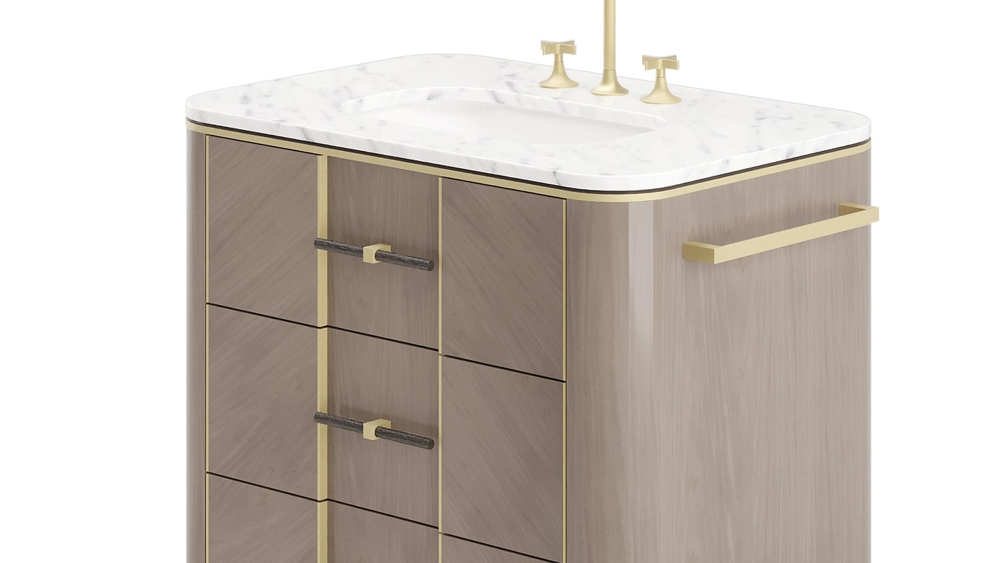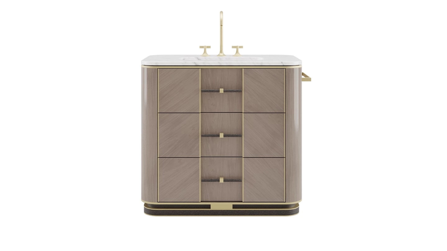 Являясь эстетическим продолжением нашей коллекции мебели ASHI, туалетный столик наполнен индивидуальностью. Выполненный в форме изогнутого куба, он оснащен тремя выдвижными ящиками, обеспечивающими удобное хранение ваших косметических принадлежностей.
