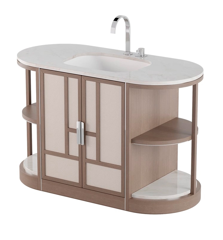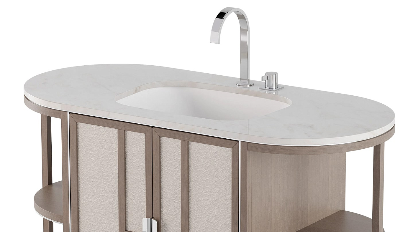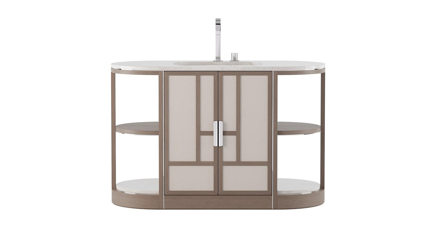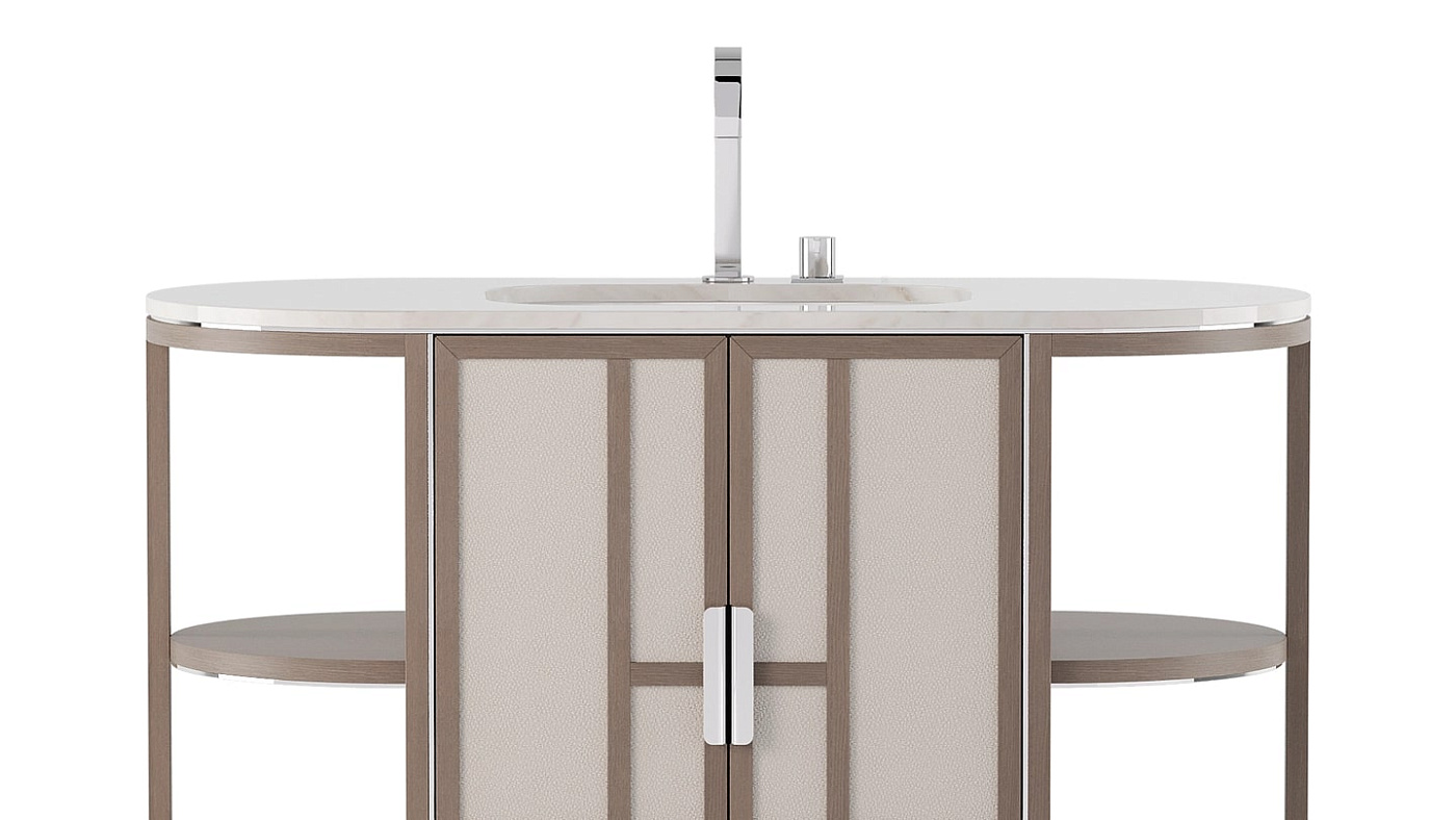 Сочетая в себе структурированные углы и изящные изгибы, туалетный столик KYIV II привнесет современную атмосферу в вашу ванную комнату. Он разработан таким образом, чтобы идеально сочетаться с KYIV зеркалом.