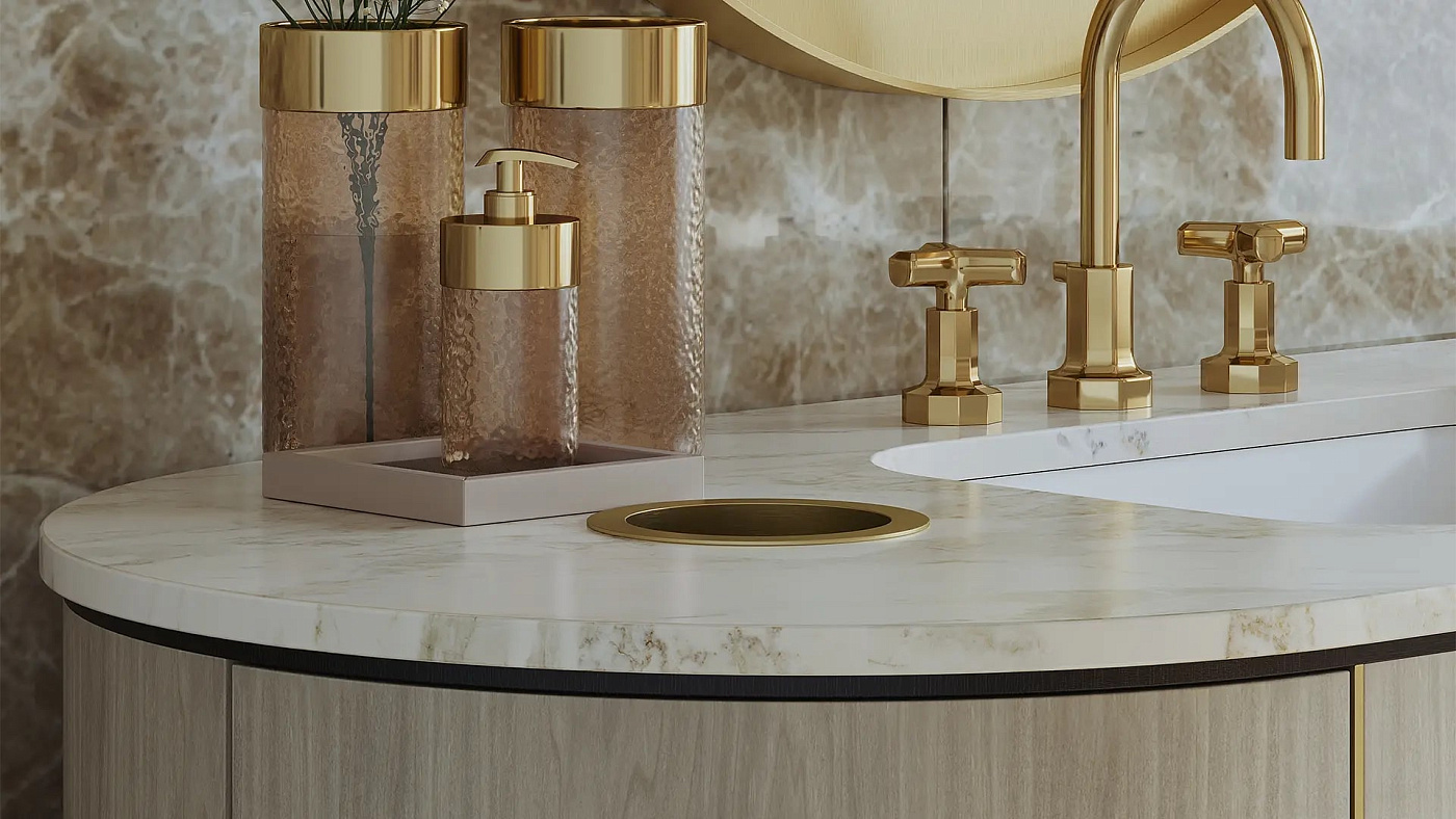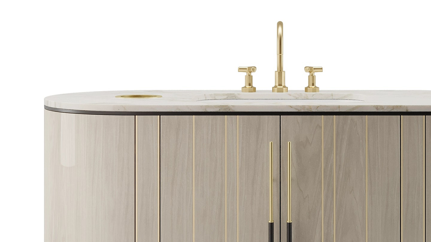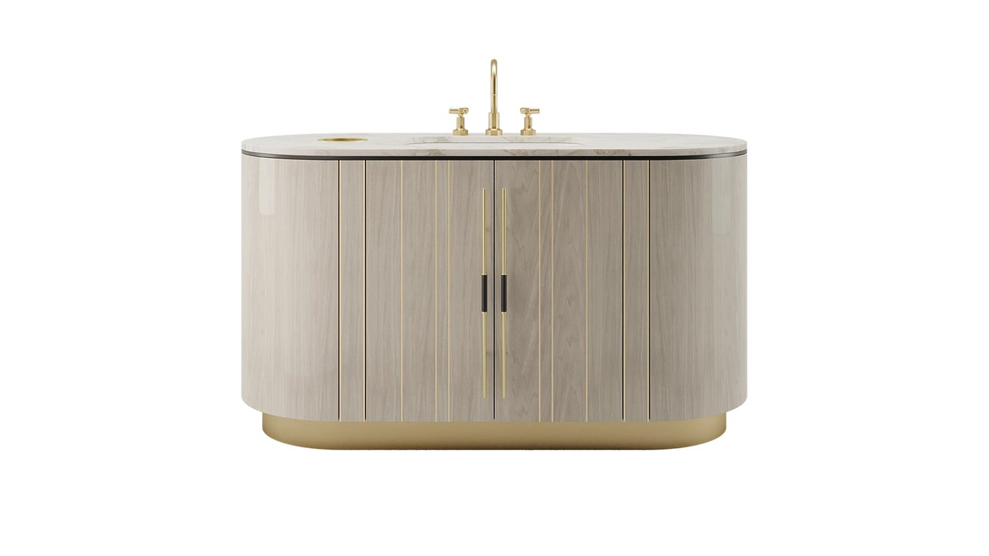 Туалетный столик SALAMANCA, облицованный глянцевым деревянным шпоном, с гладкой мраморной столешницей, дискретными дверными ручками и вешалкой для полотенец, обладает сдержанной элегантностью, которая говорит о многом. Если в вашем списке пожеланий по увеличению площади ванной комнаты стоит обратить внимание на привлекательный туалетный столик SALAMANCA, который имеет большое пространство со стороны раковины и удобное хранилище для использованных полотенец.