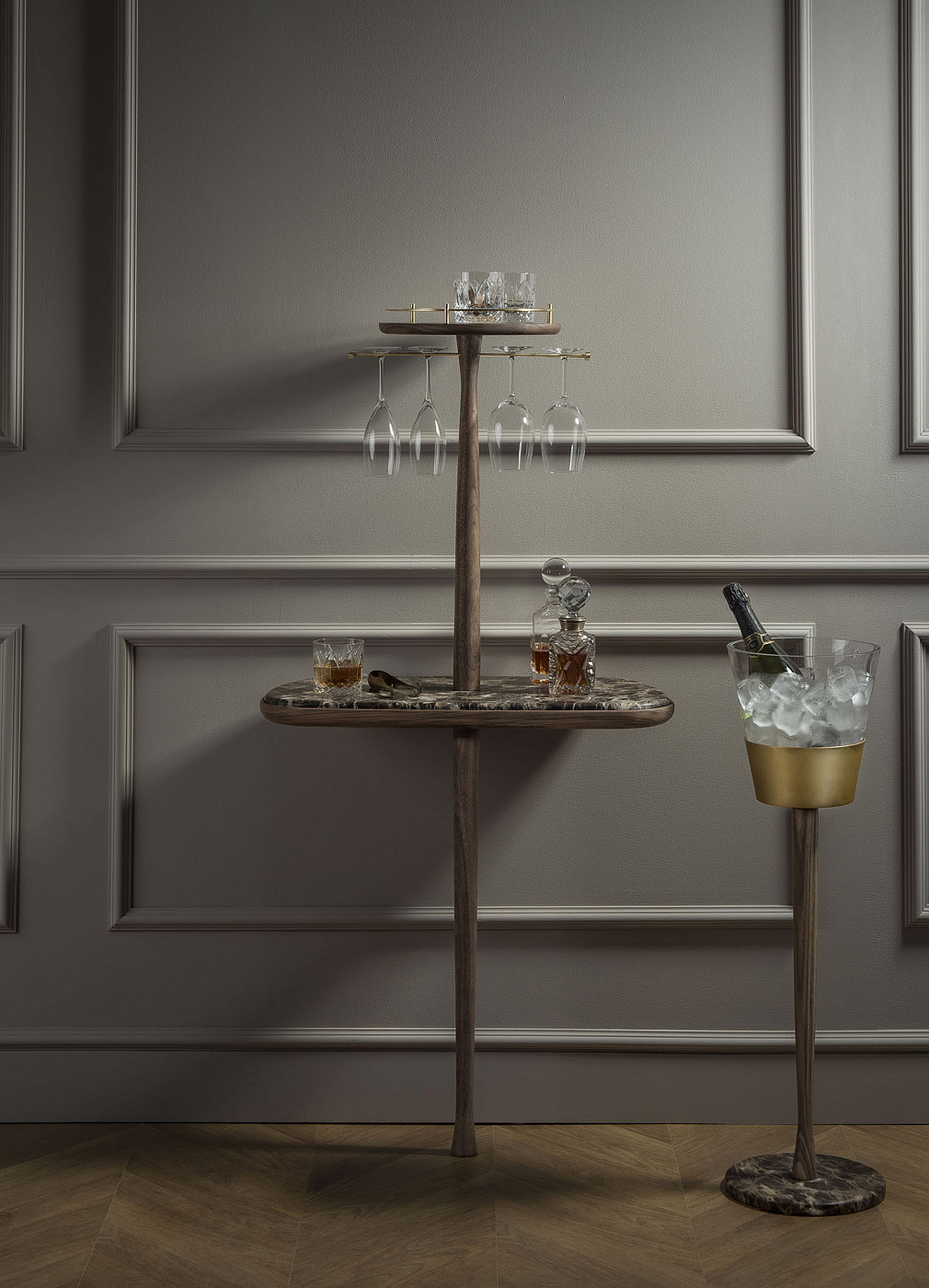 Мы создаем пространство для наслаждения напитком в хорошей компании. Мраморный бар и бокалы, подвешенные на золотых стержнях, напоминают классические коктейль-бары.