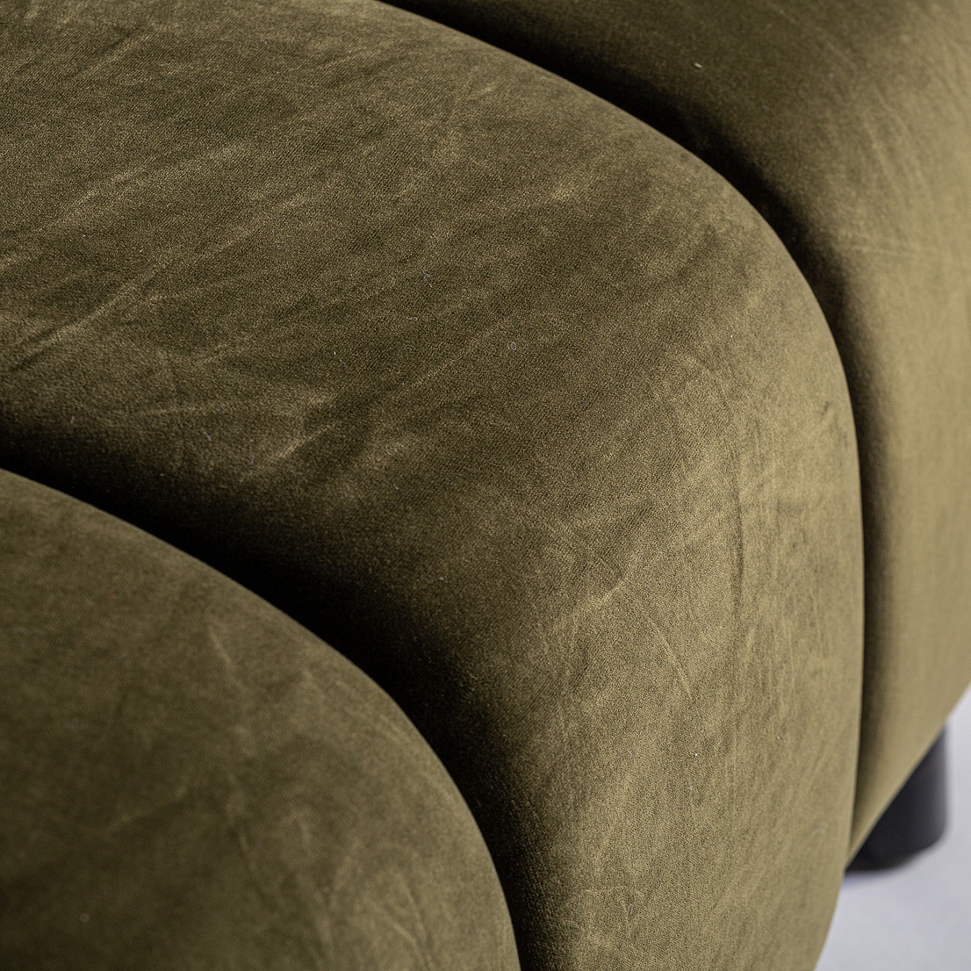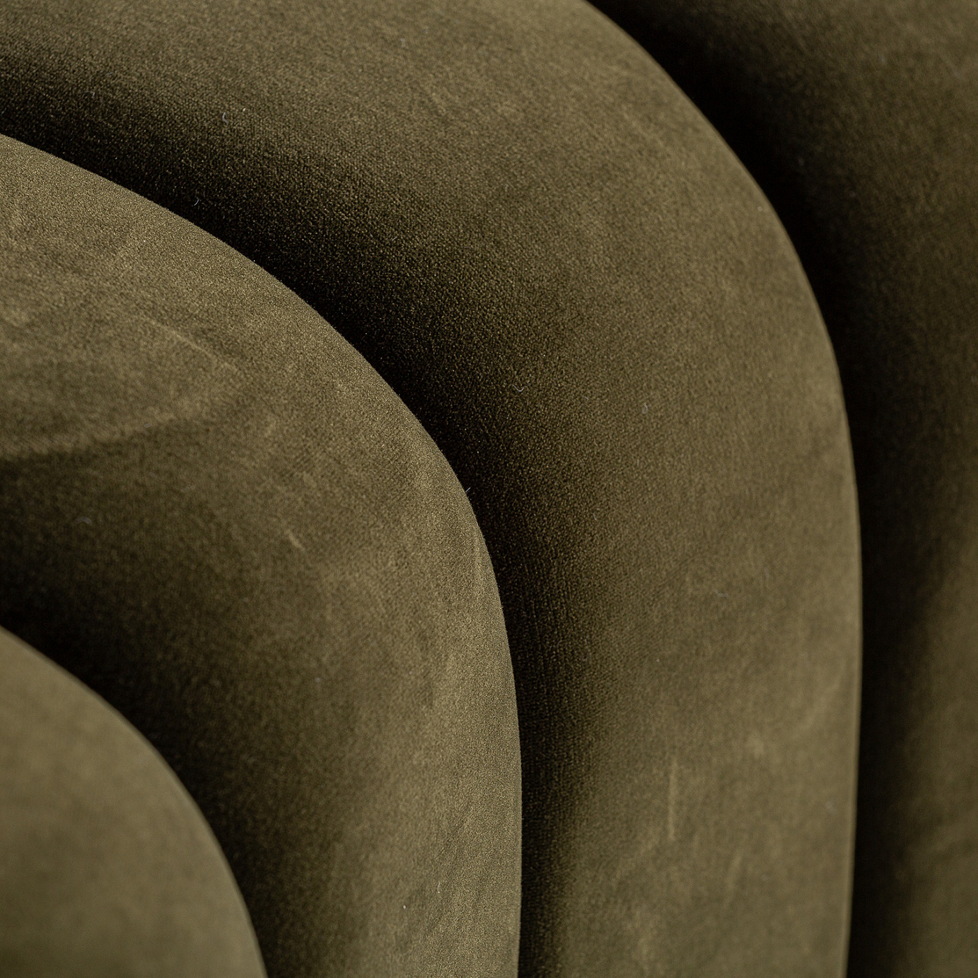 Модульный диван-шул зеленого цвета в стиле арт-деко. Изготовлен из бархата в сочетании с поролоном.