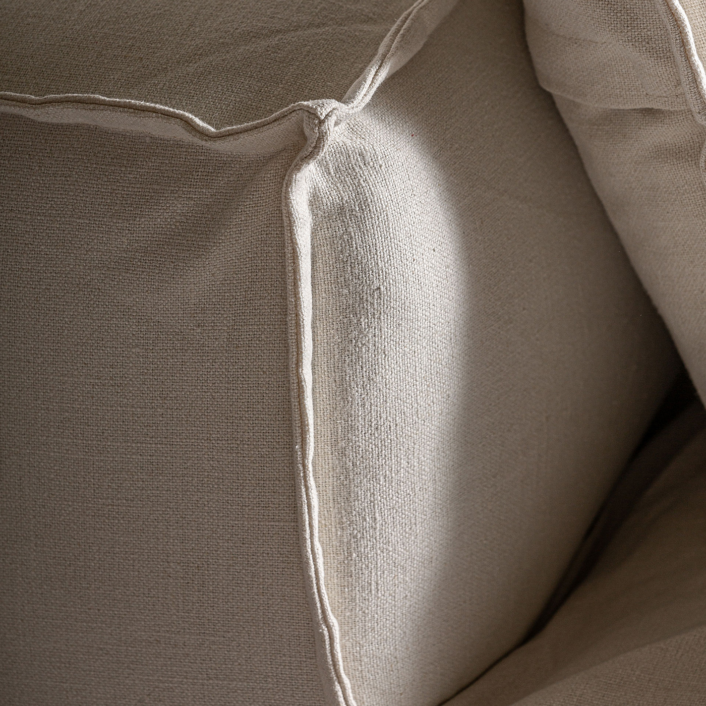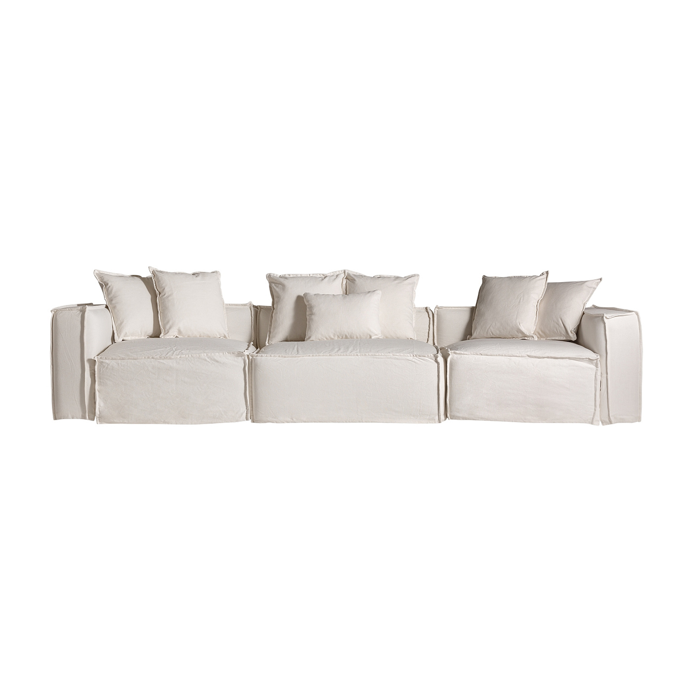 Модульный диван Virolle белого цвета в стиле арт-деко. Изготовлен из льна в сочетании с хлопком и поролоном. Съемное изделие.