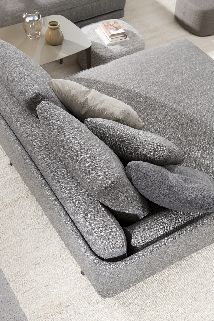 Современная модульная система сидений Bogart отличается повышенной элегантностью и величием благодаря идеально сбалансированным формам. Система словно парит на изящных ножках. Модульная система, одновременно гибкая и динамичная в своей утонченной обстановке, где большие подушки, казалось бы, не поддаются силе тяжести. Подушки для сидения и спинки украшены кантом, подчеркивающим их форму, в то время как в этой серии всегда присутствует глубокое ощущение комфорта. Эта система сидений состоит из множества характерных элементов, таких как шезлонг, и может быть размещена как отдельный геометрический элемент, так и в различных комбинациях для создания привлекательных решений.