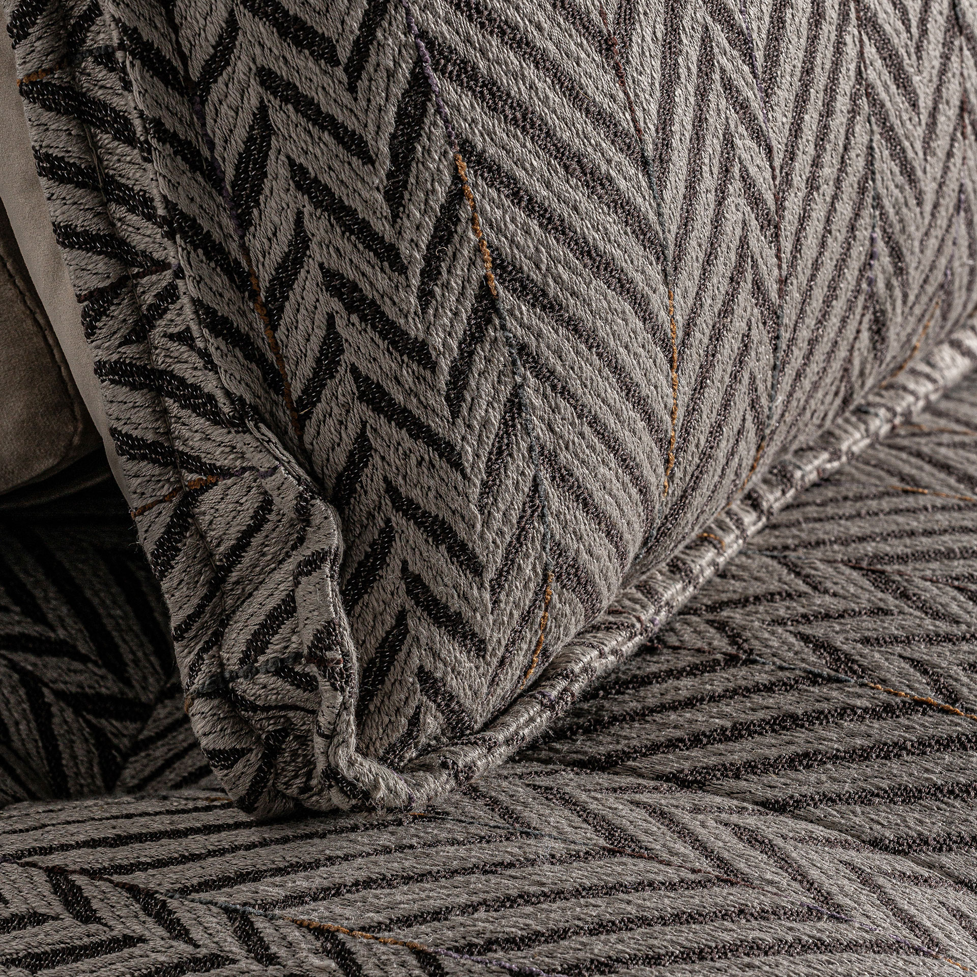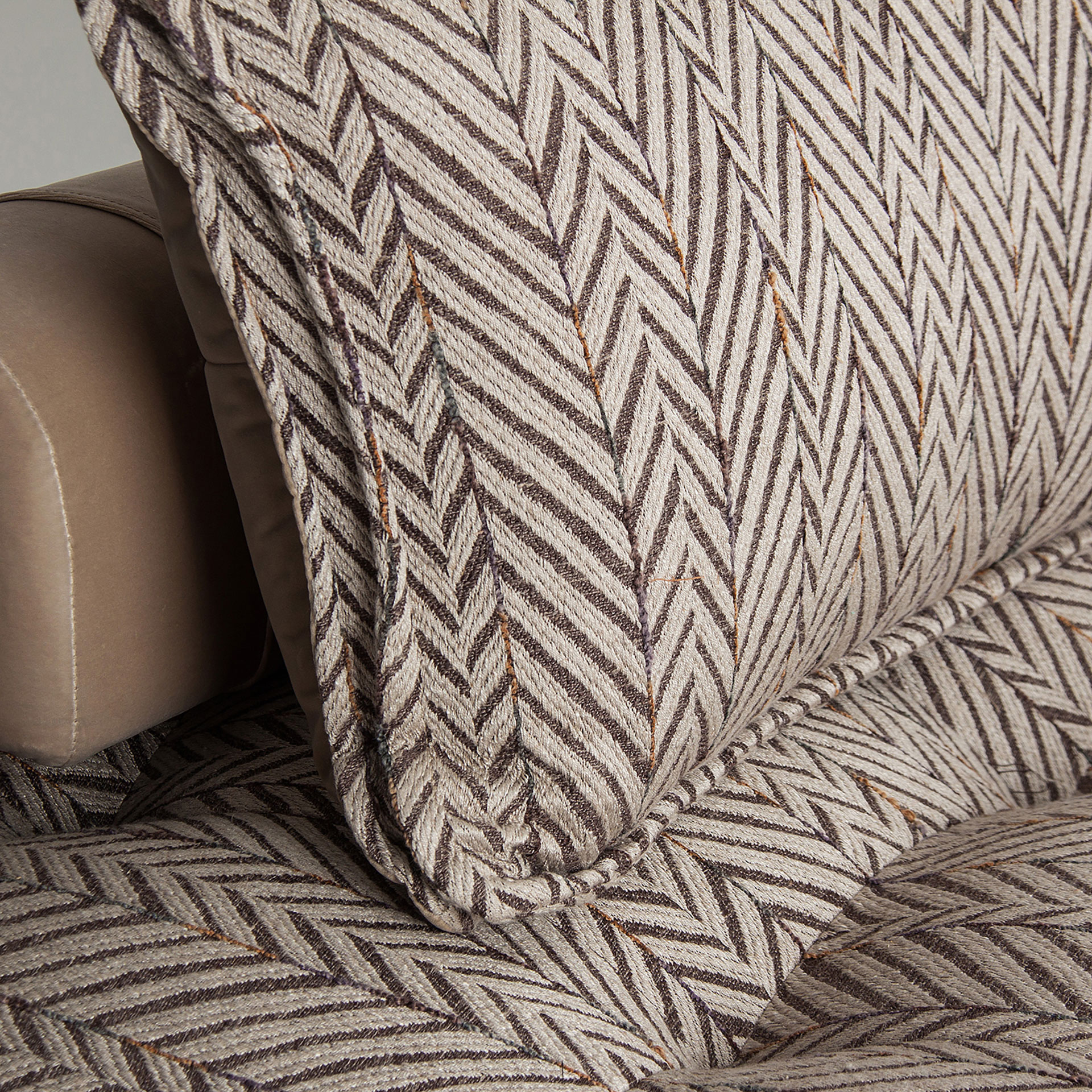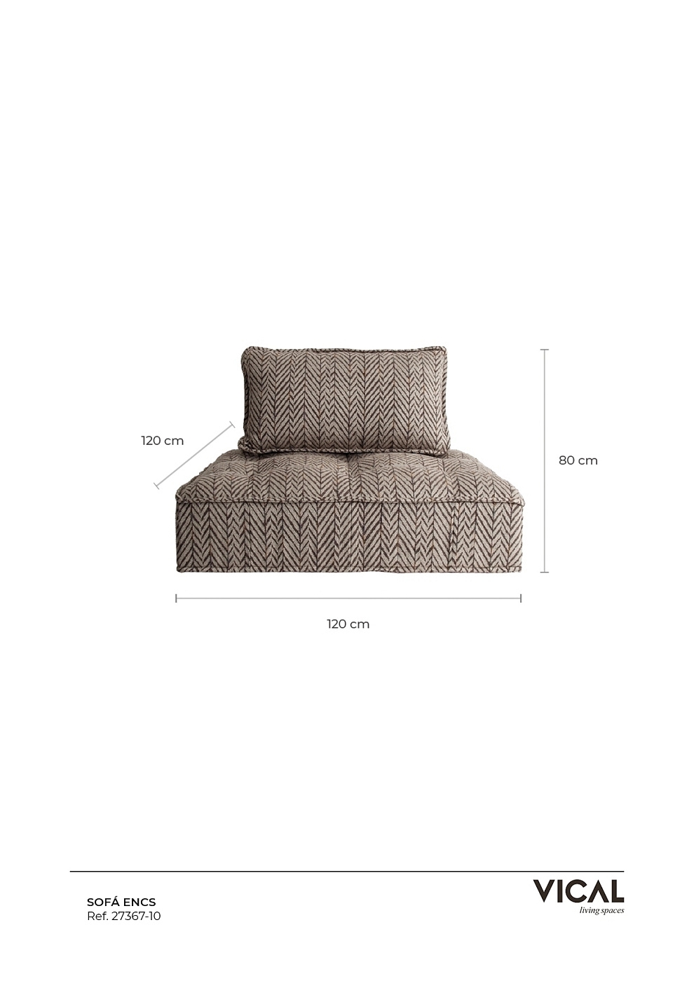 Модульный диван Encs, коричнево-бежевого цвета с принтом, современный стиль. Изготовлен из полиэстера в сочетании с бархатом и льном. Изделие съемное, чехол съемный. Совместим с: 27368.
