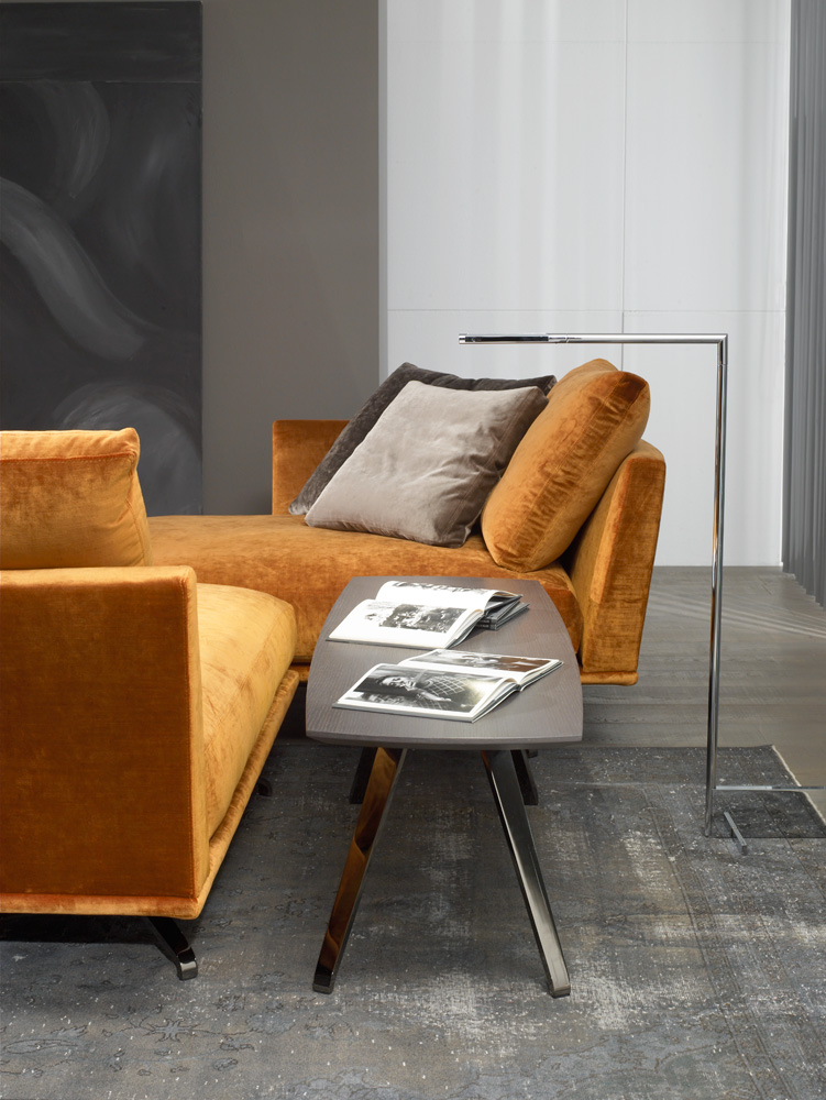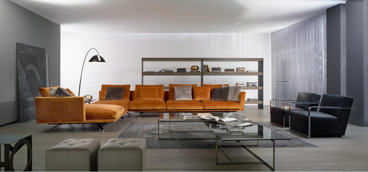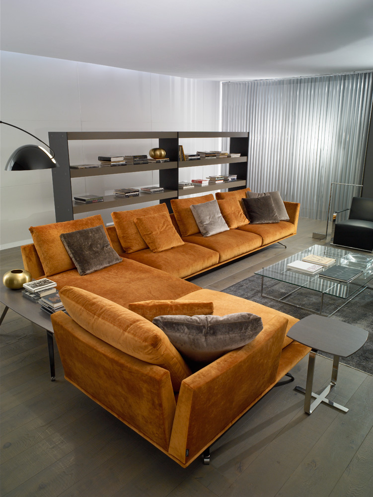 Коллекция Shelby задумана как линейный продукт, который визуально парит над землей. Весь его объем поддерживается только тонкими ножками, а его кажущаяся тонкая металлическая рама позволяет создавать диваны длиной более трех метров. В коллекции представлены многочисленные модули, а также шезлонги и пуфы для создания всевозможных композиций. Каркас изготовлен из стали и дерева. В качестве наполнителей используются высококачественный пенополиуретан различной плотности, утиное перо и синтетическое волокно. Доступен практически в любом цвете, для обивки может быть использована ткань, натуральная или искусственная кожа. Полностью съемные чехлы (если обивка из ткани) позволяют в любой момент изменить цвет обивки или заметить ее в случае повреждения. Версия Shelby Class позволяет размещать один и тот же диван в более современных условиях, используя то же техническое разрешение, но добавляя детали нижнего волана, что придает немного другой вид тому же дивану.