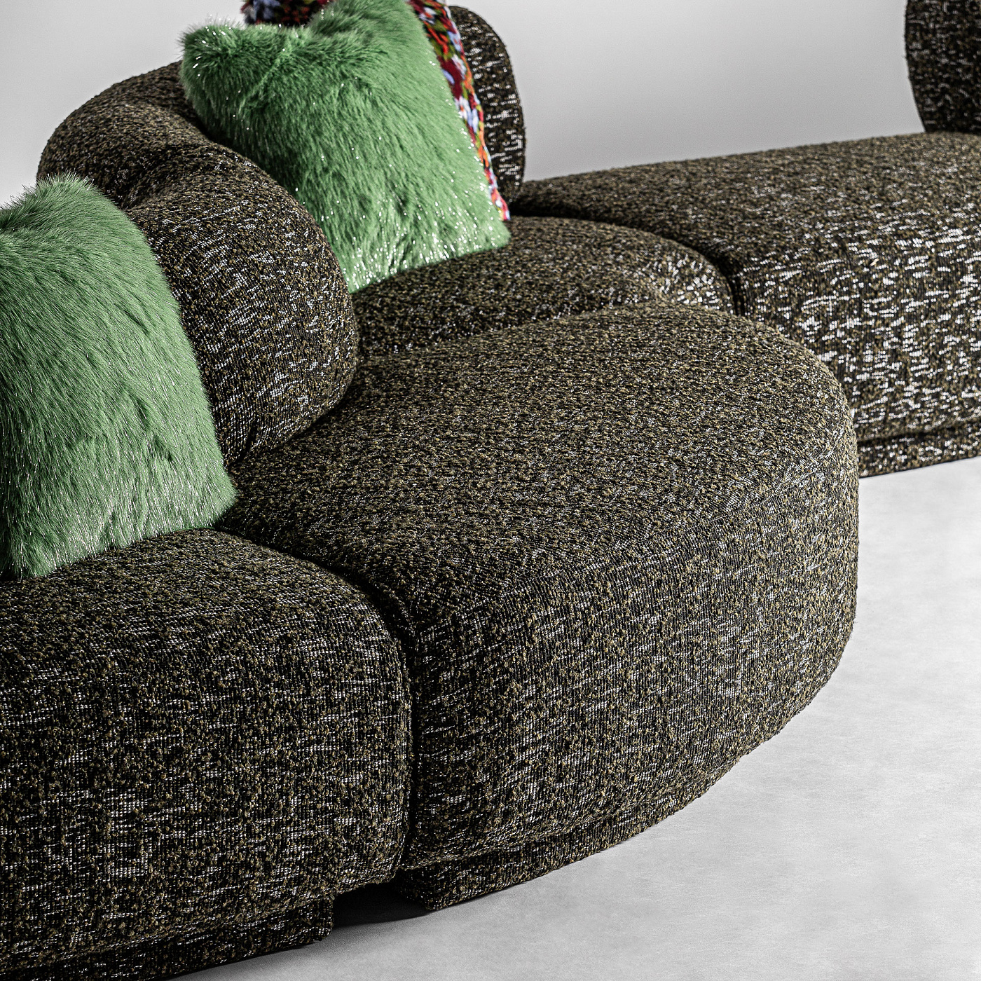 Центральный модуль дивана Kozly в современном стиле, изготовлен из зеленого полиэстера с пятнистой отделкой в сочетании с древесиной сосны и фанерой. Совместимо с: 36117,36118,36116,36120.