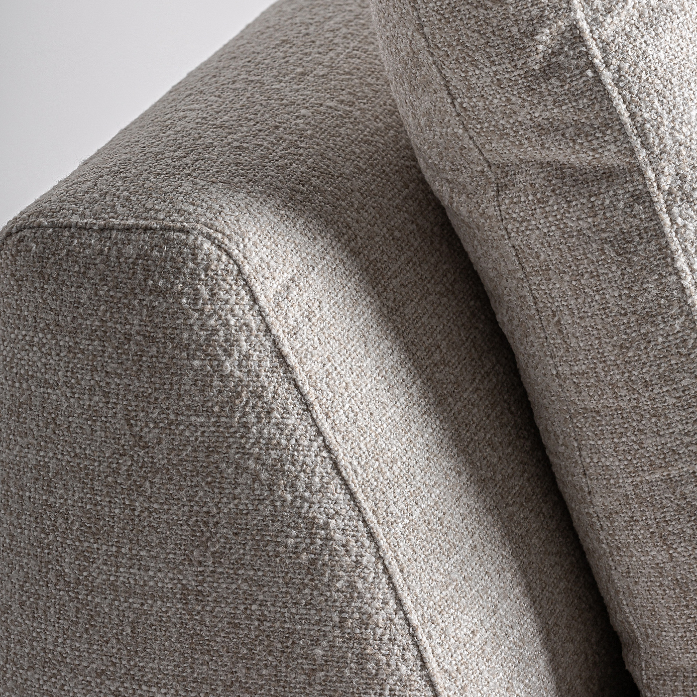 Центральный модуль дивана Wingles в современном стиле, изготовлен из бежевой лиственницы с пестрой отделкой в сочетании с полиэстером кремового цвета и черным железом. Подушки наполнены смешанным гусиным пером. . Совместимо с: 36090,36092.