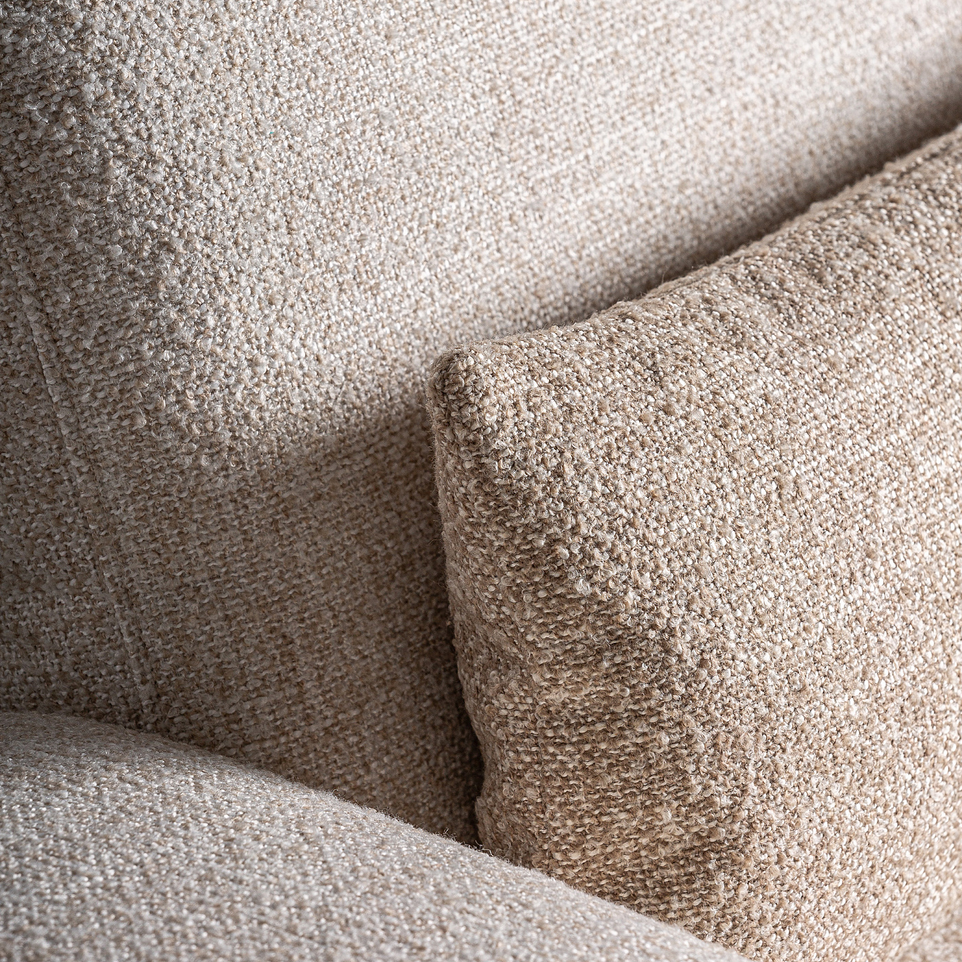 Угловой диван-модуль Wingles в современном стиле, изготовлен из бежевой лиственницы с пестрой отделкой в сочетании с полиэстером и поролоном кремового цвета. Черные железные ножки. Подушки наполнены смешанным гусиным пером. . Совместимо с: 36091,36092.