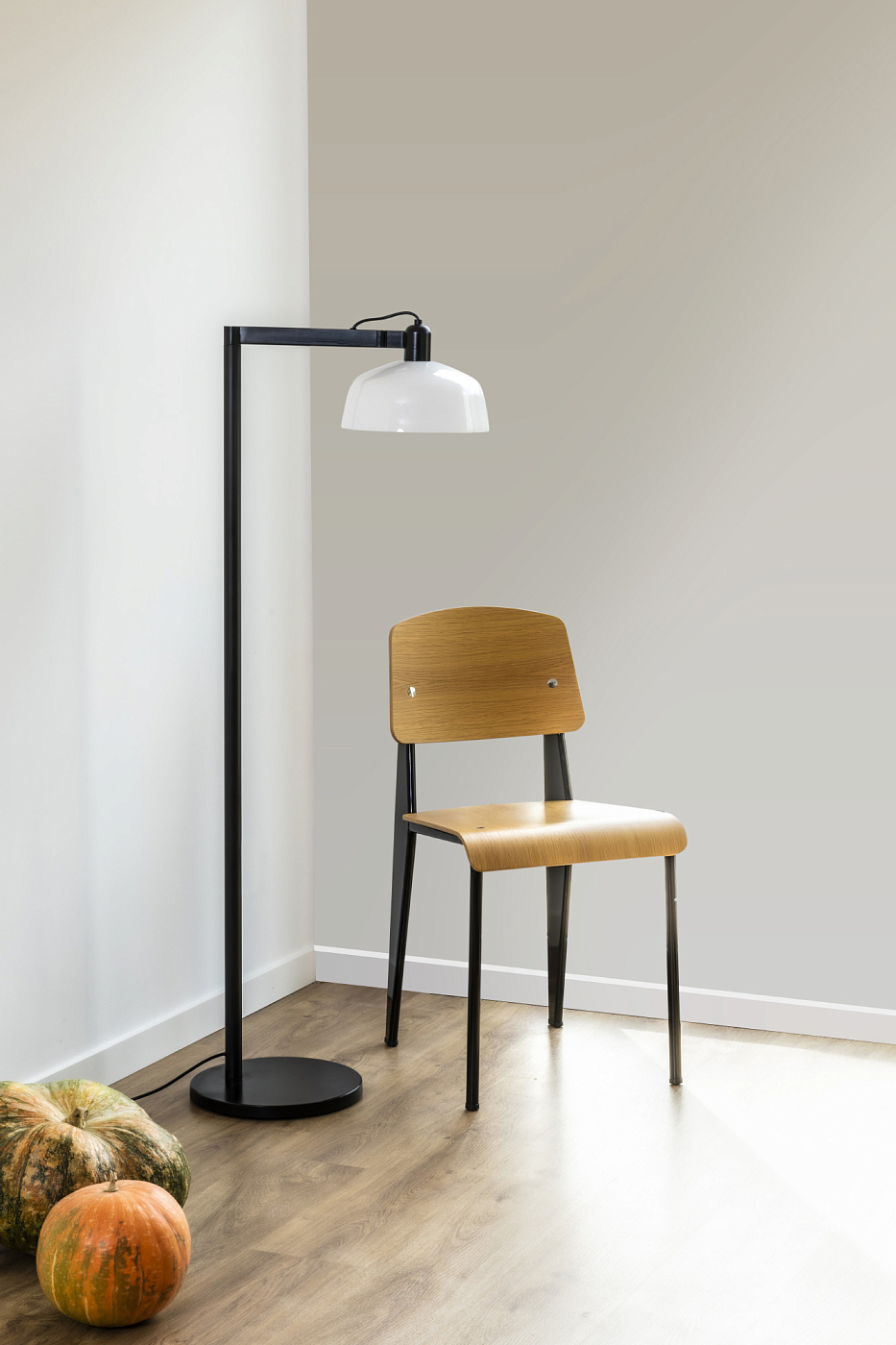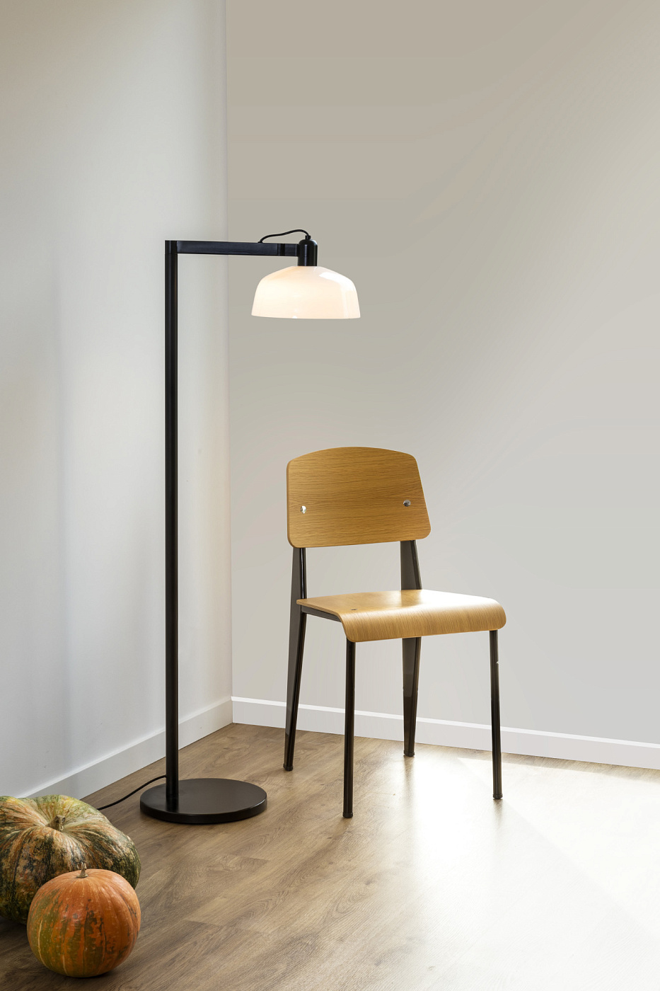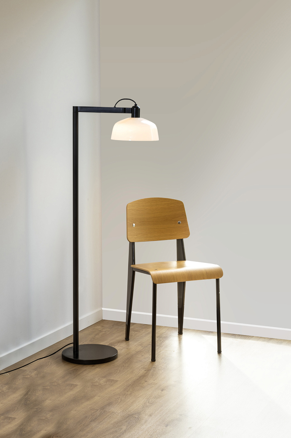 TATAWIN — это семейство светильников, разработанное Адольфо Абейоном. Форма тени напоминает верхнюю часть характерных домов Татауина, города на юго-востоке Туниса. Этот торшер с поворотным кронштейном имеет черную металлическую конструкцию и белый опаловый абажур.