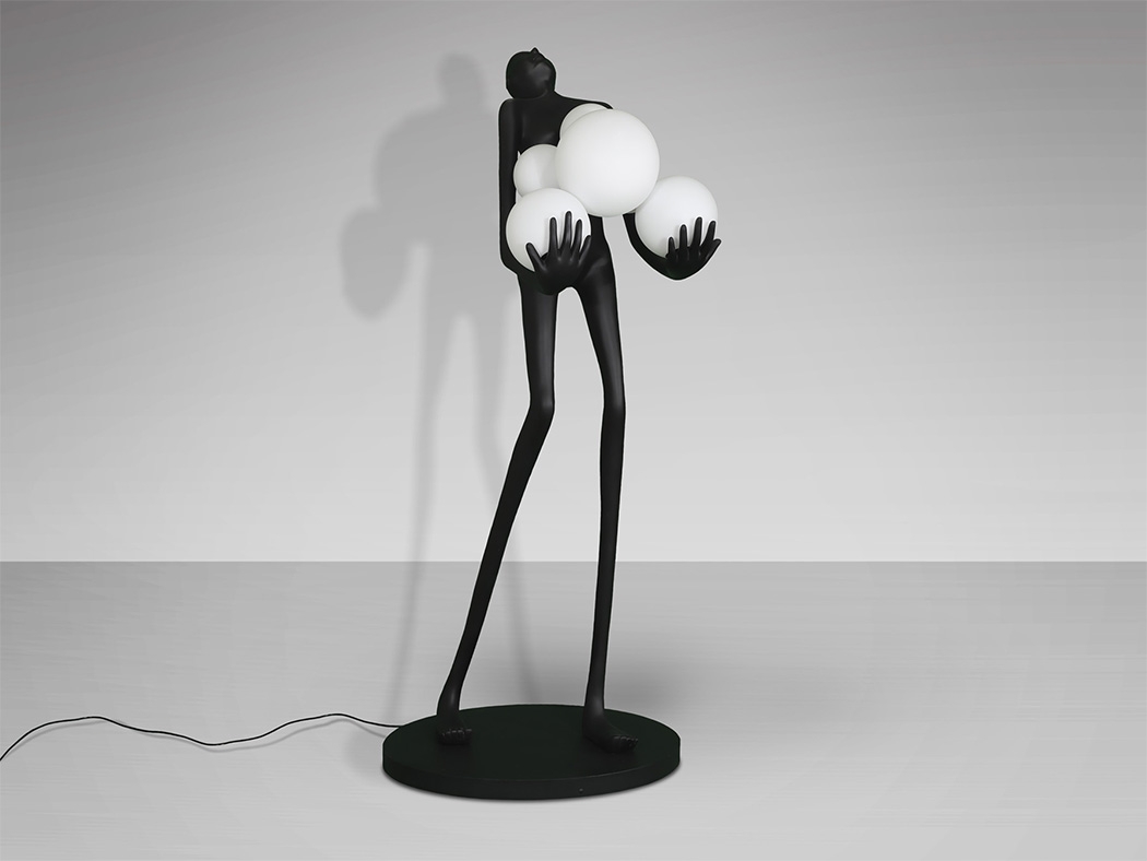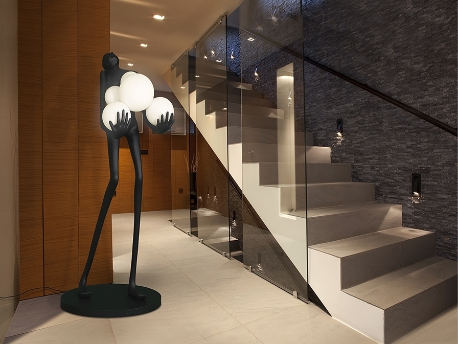 Фигура изготовлена из стекловолокна и полиэфирной смолы, матово-черная отделка, сферические плафоны из акрилового стекла с матово-опаловой отделкой. ·В комплект входят 6 светодиодов E27 мощностью 7 Вт. РЕГУЛИРУЕМАЯ ЯРКОСТЬ