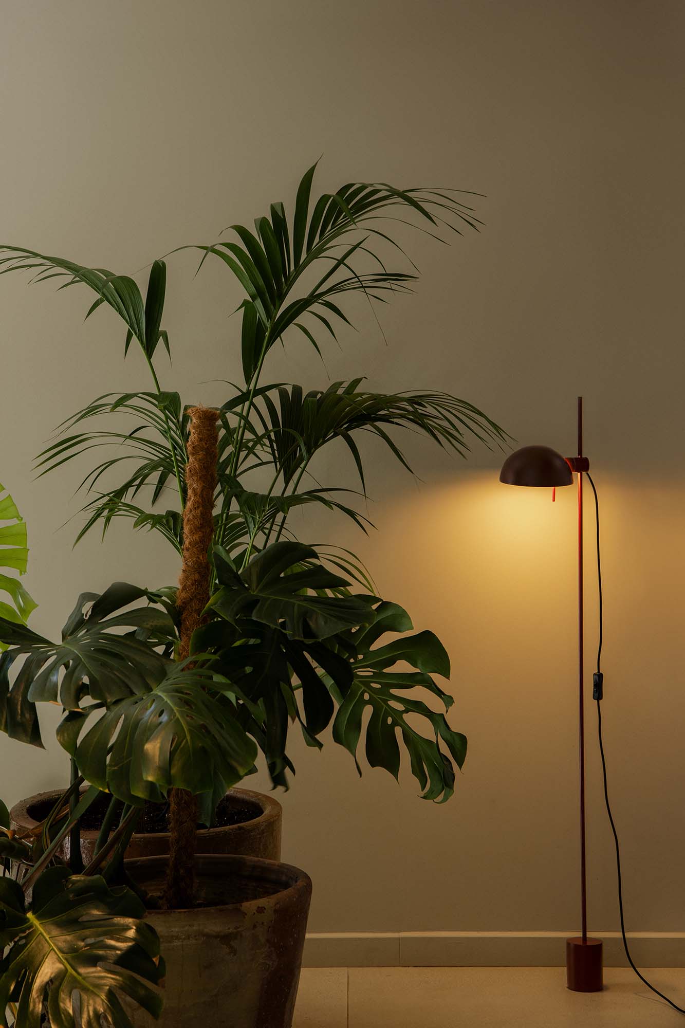 Семейство MATILDA, разработанное Faro Lab, может похвастаться геометрическим минимализмом, который позволяет ему вписаться в любое пространство. Его вращающаяся система абажуров и регулировка высоты предлагают широкий спектр световых эффектов, что делает его многофункциональной коллекцией. Напольный светильник гранатового цвета характеризуется чистыми и геометрическими формами.