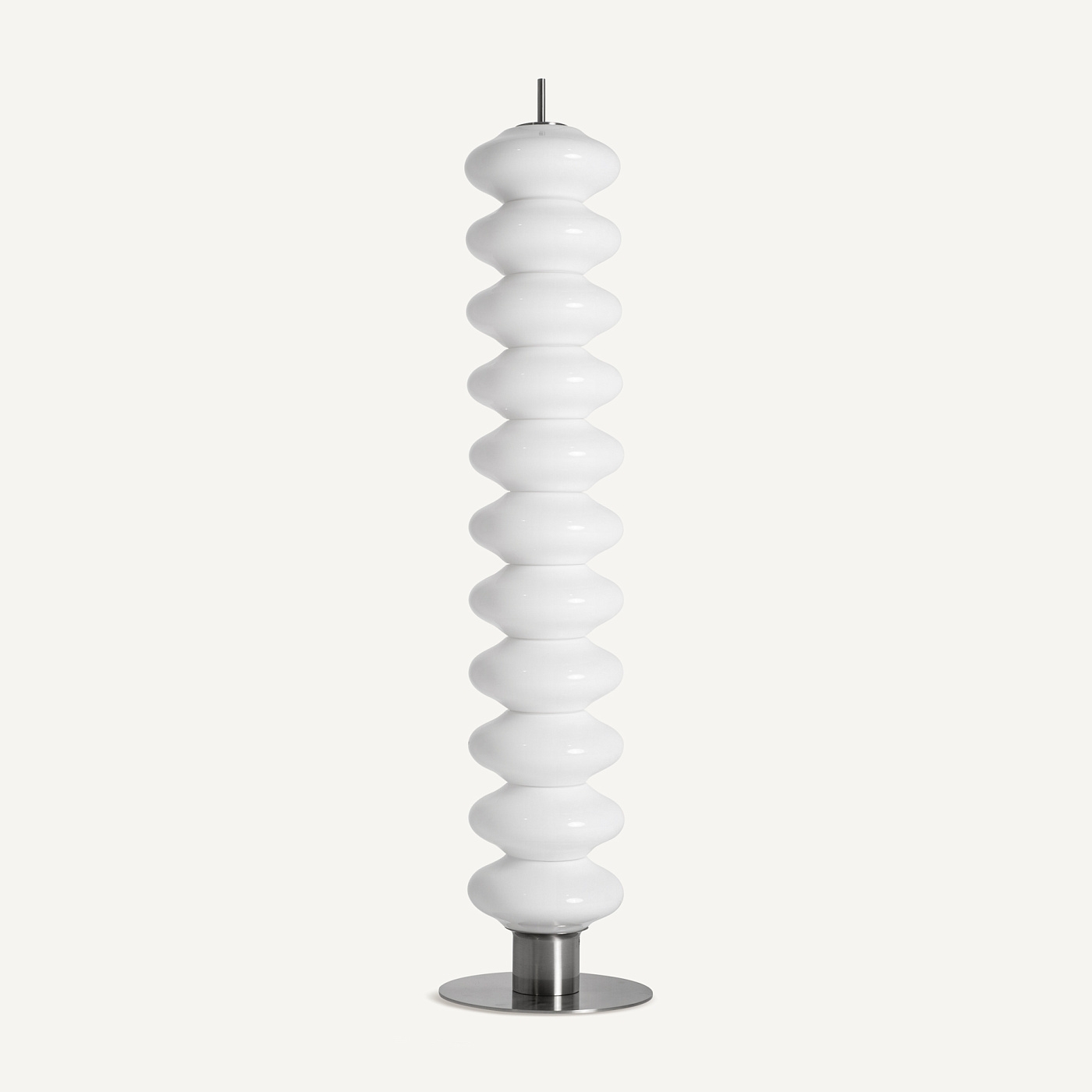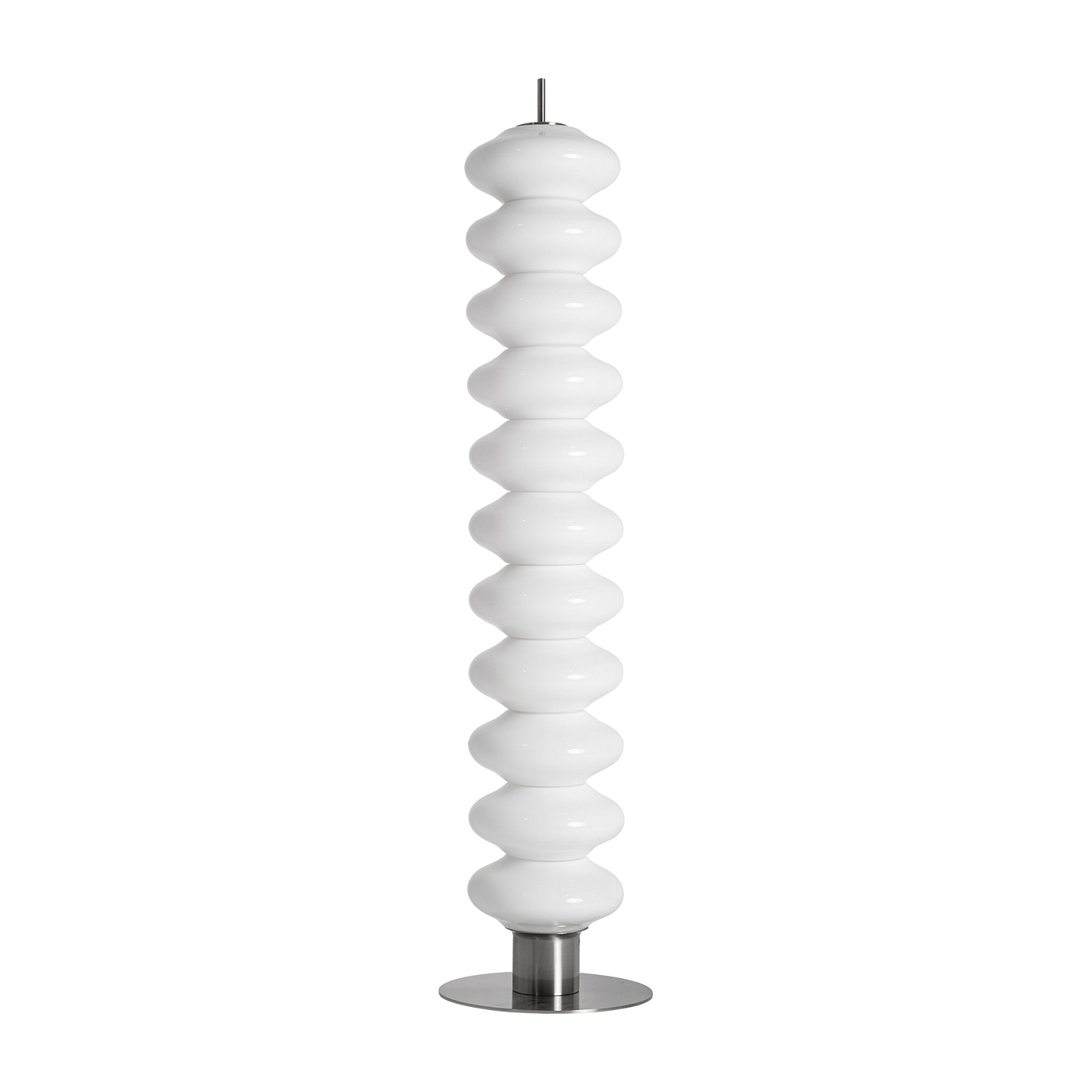 Напольный светильник Tiare в современном стиле, выполнен из белого стекла в сочетании с серебристым железом. Изделие разборное. Ширина: 37 см, Глубина: 37 см, Высота: 150 см