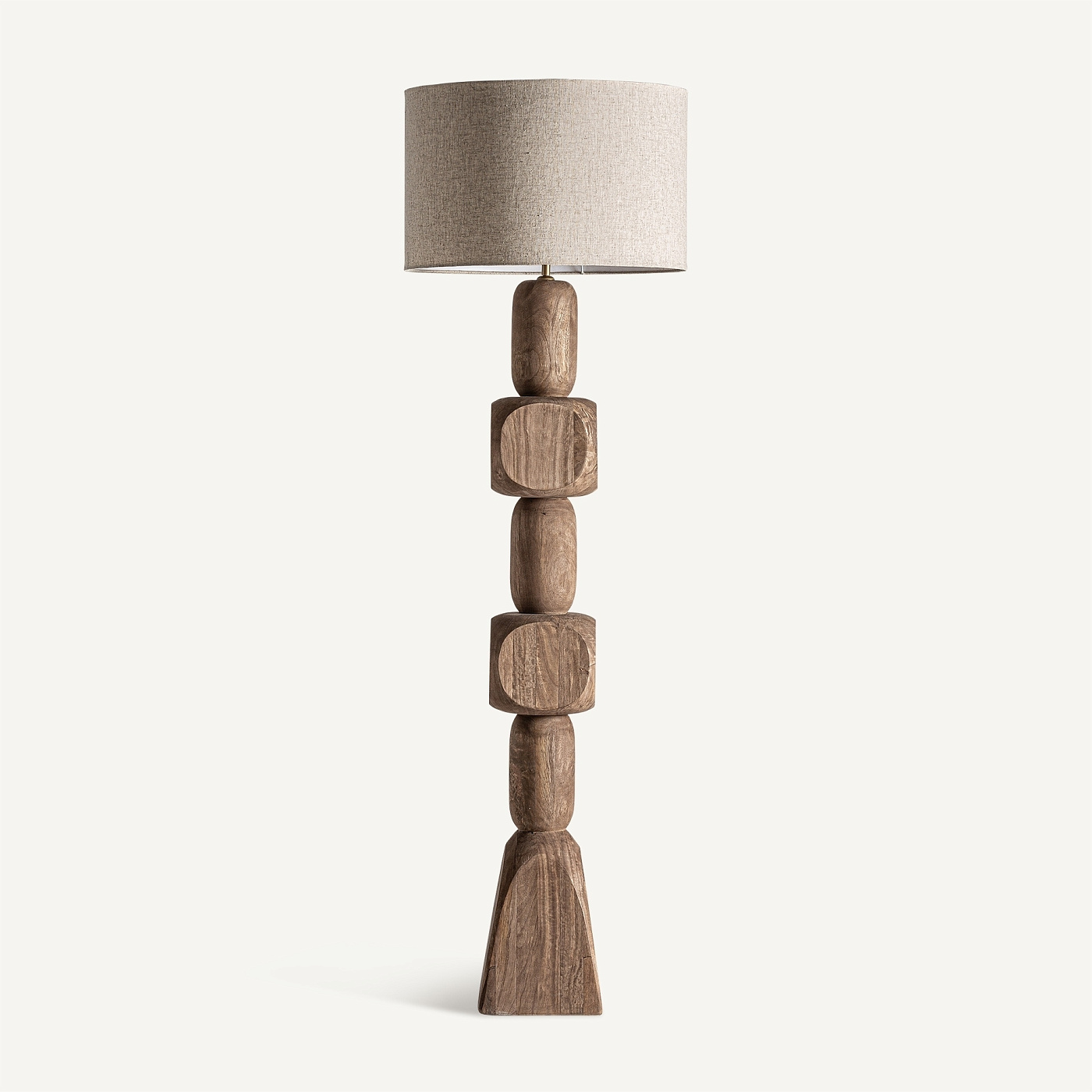 Напольный светильник Cogne в современном стиле, изготовлен из коричневого мангового дерева в сочетании с кремовым джутом.