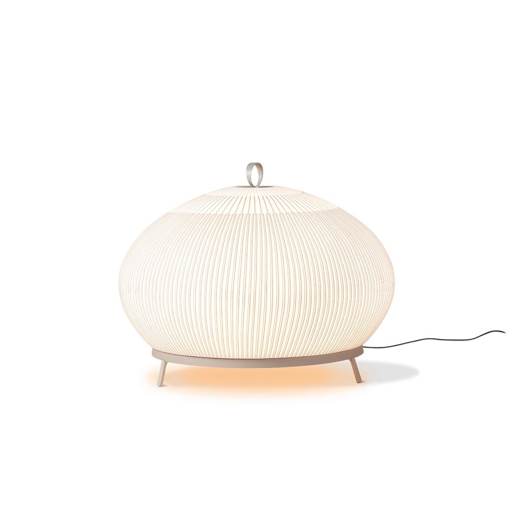 Форма, материальность и осязаемость сталкиваются в торшере Knit. Его текстура магнетическая, она манит нас прикоснуться к его поверхности, почувствовать его тепло и прижать к себе. Свет просачивается наружу через ткань торшера Knit и вниз через полупрозрачный рассеиватель, смягчая его свечение. Двухцветная строчка в сочетании с магическим эффектом разной плотности создает сложную матрицу нюансных оттенков — от теплых серых и охристых до полированной меди и нежно-розового.
