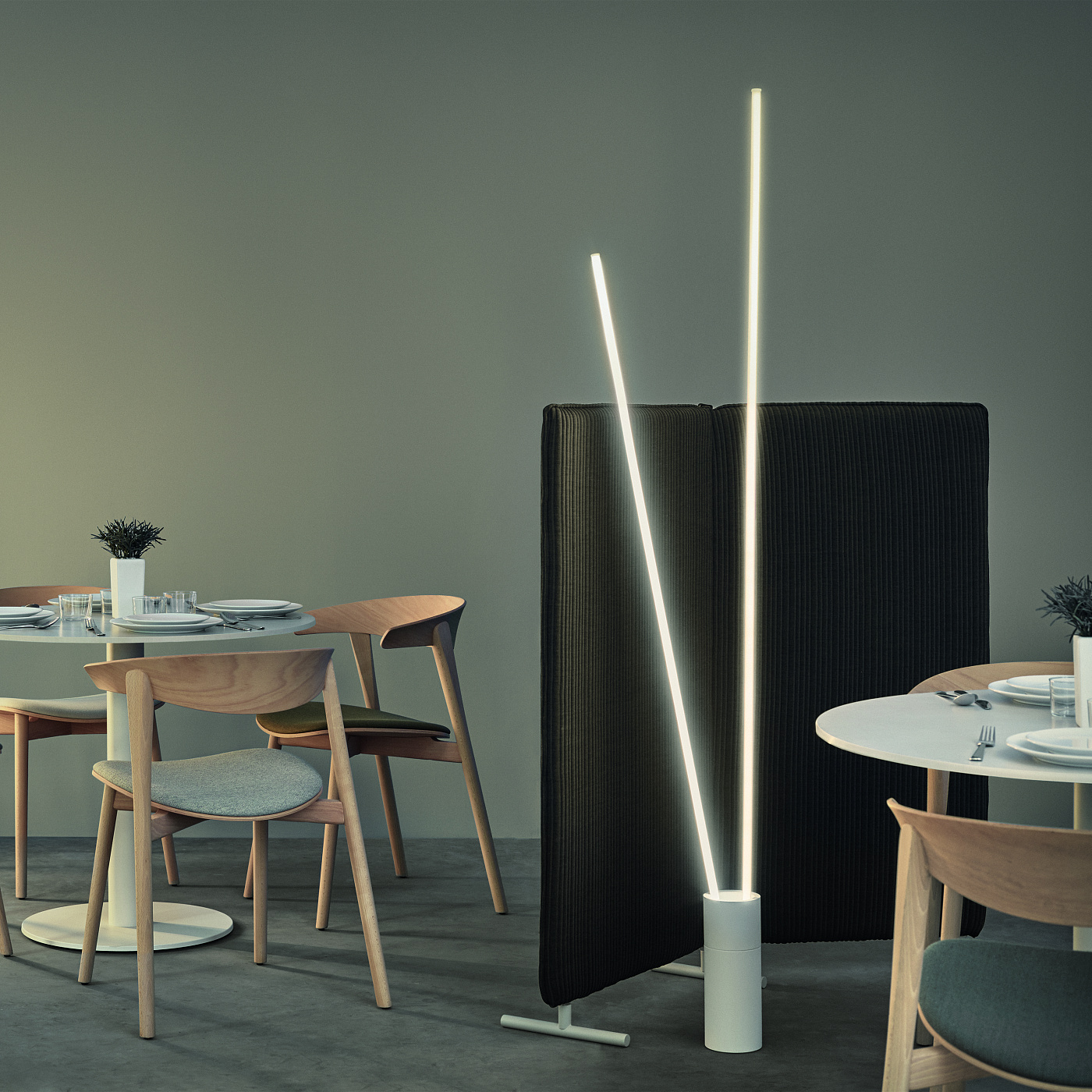 VERTICAL дает возможность осветить пространство с впечатляющей эффективностью, сохраняя при этом скромность и практичность формы. Светильники представляют собой вертикальные штрихи, которые косвенно освещают пространство с вариантами крепления к полу и потолку или в качестве подвески. Деликатные линейные светильники представлены в черном и белом цветах и могут быть повернуты к стене или от нее в зависимости от планировки интерьера. VERTICAL является достаточно универсальной коллекцией эффективного светодиодного освещения. Лаконичный дизайн световых элементов создан, чтобы сохранить элегантность и сдержанность пространства. Коллекция может быть удачно использована как в общественных помещениях, как кафе или офис, так и в домашнем интерьере гостиной. Также в коллекции VERTICAL представлены торшеры с двумя или тремя светодиодными линиями разной высоты, которые своим анархическим расположением придают пространству оригинальность и оттенок игры.