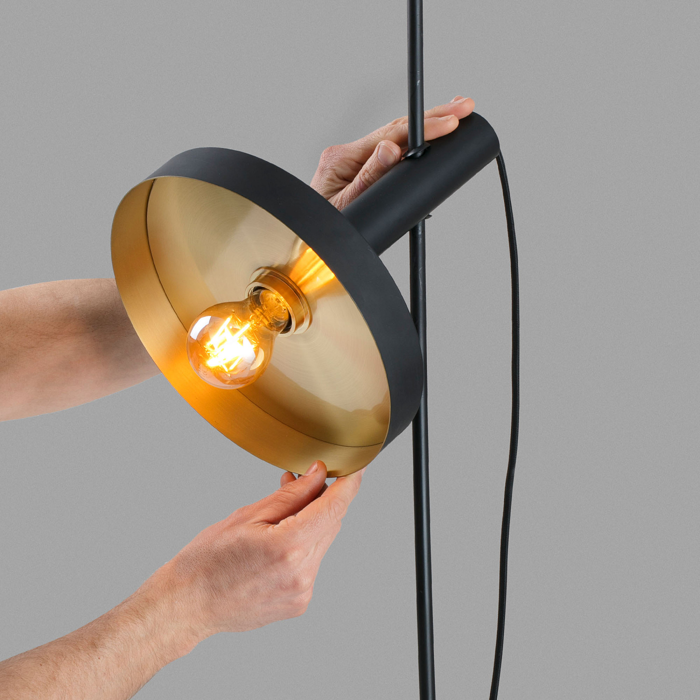 WHIZ - это семейство дизайнерских светильников, созданное Кристофом Фридрихом Вагнером, которое включает в себя модные отделки, такие как сочетание черного и сатинированного золота. Идеально подходит для использования с лампой накаливания с декоративной нитью. Его форма делает его одновременно подвесным светильником и торшером, идеально подходящим для освещения различных помещений в вашем доме.