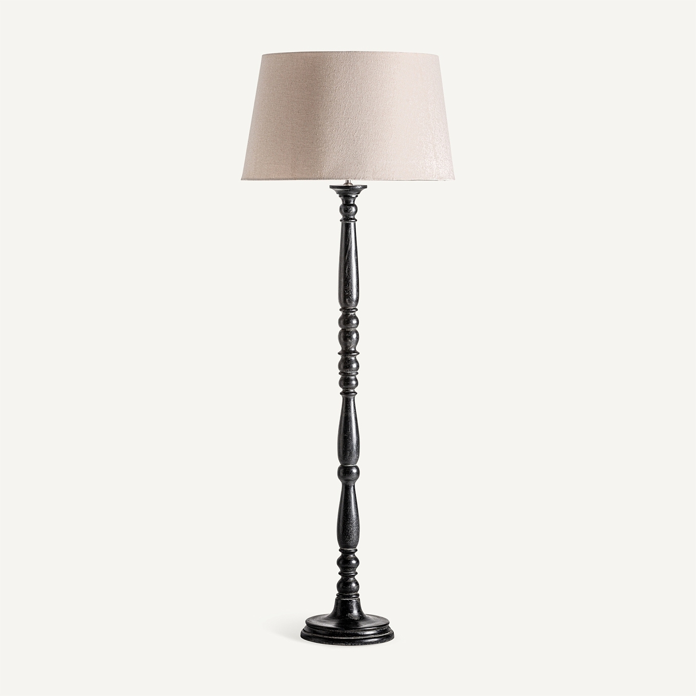 Напольная лампа Henri в классическом стиле, изготовленная из белого мангового дерева в сочетании с черным хлопком. Разборная конструкция. Ширина: 60 см, Глубина: 60 см, Высота: 169 см