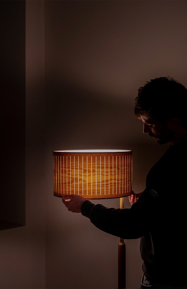 Коллекция Autumn характеризуется фильтрацией света через ламели из натурального дерева, создавая теплую и спокойную атмосферу, которая переносит нас в уютный осенний полдень.