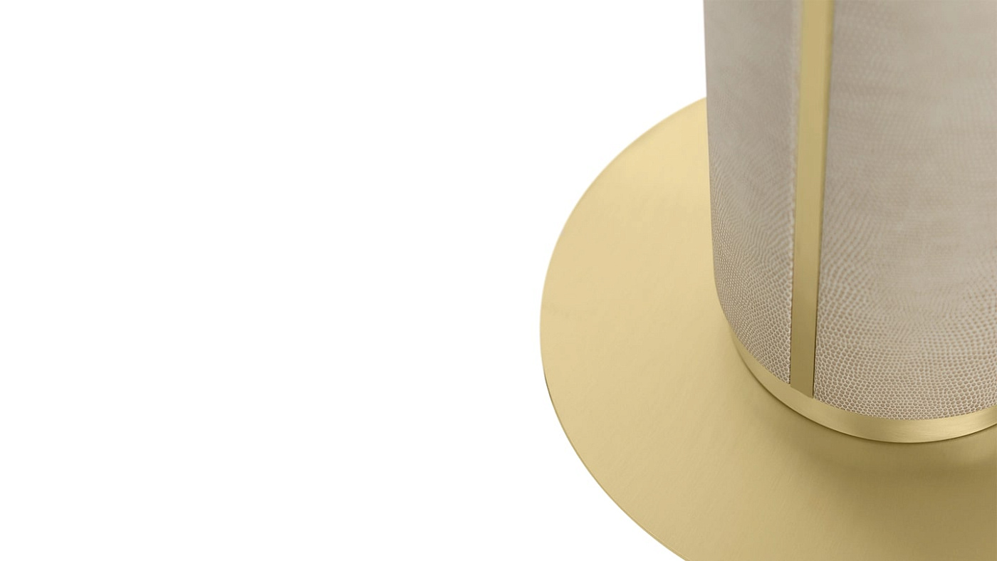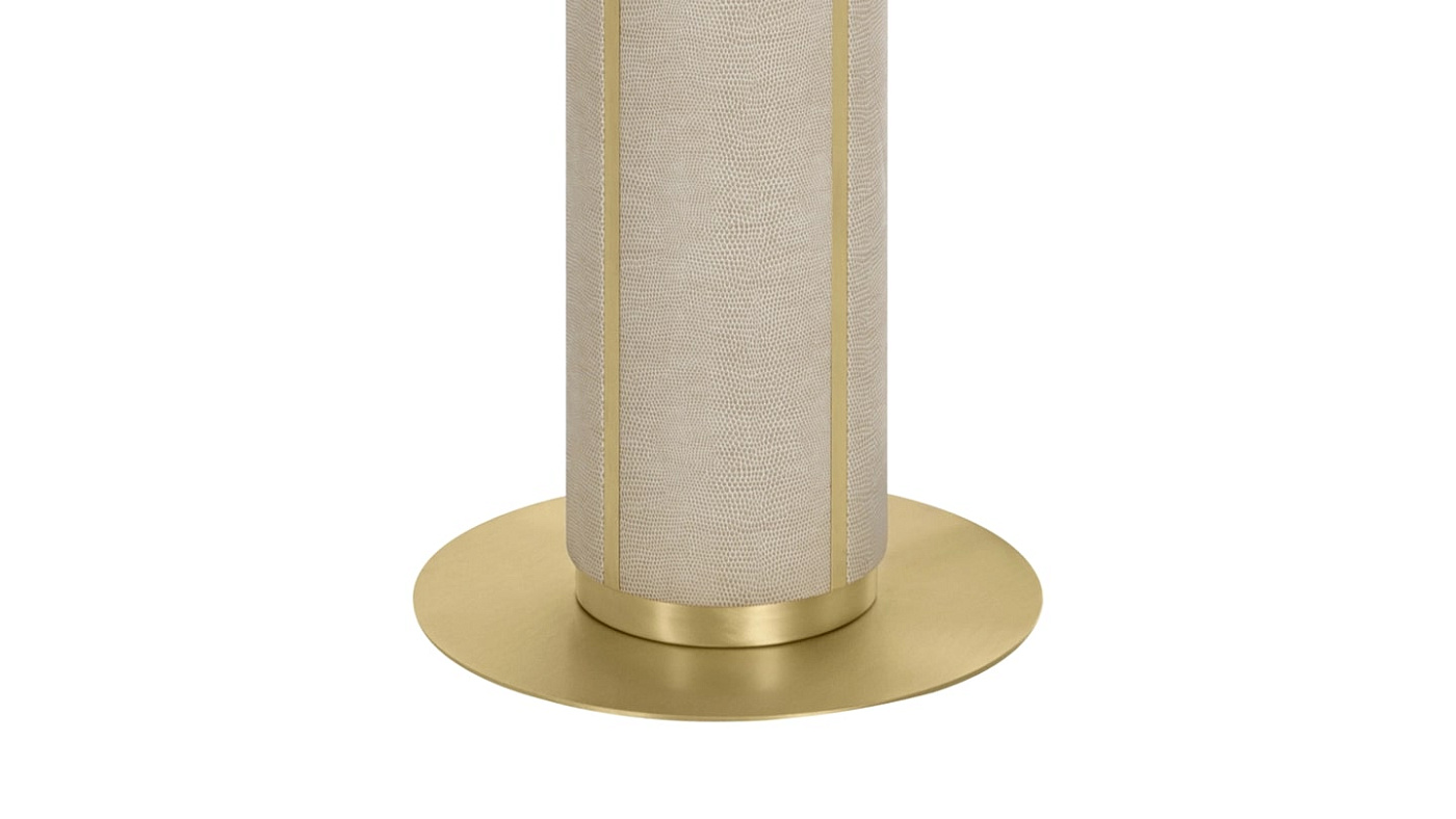Функциональная скульптура, торшер CLOSE привлекает внимание массивной ножкой, изготовленной из матовой латуни и текстурированной кожи. Это уравновешивается щедрым двойным шелковым оттенком и тонкой круглой основой. Для гармоничного внешнего вида этот дизайн также доступен в виде настольной лампы.