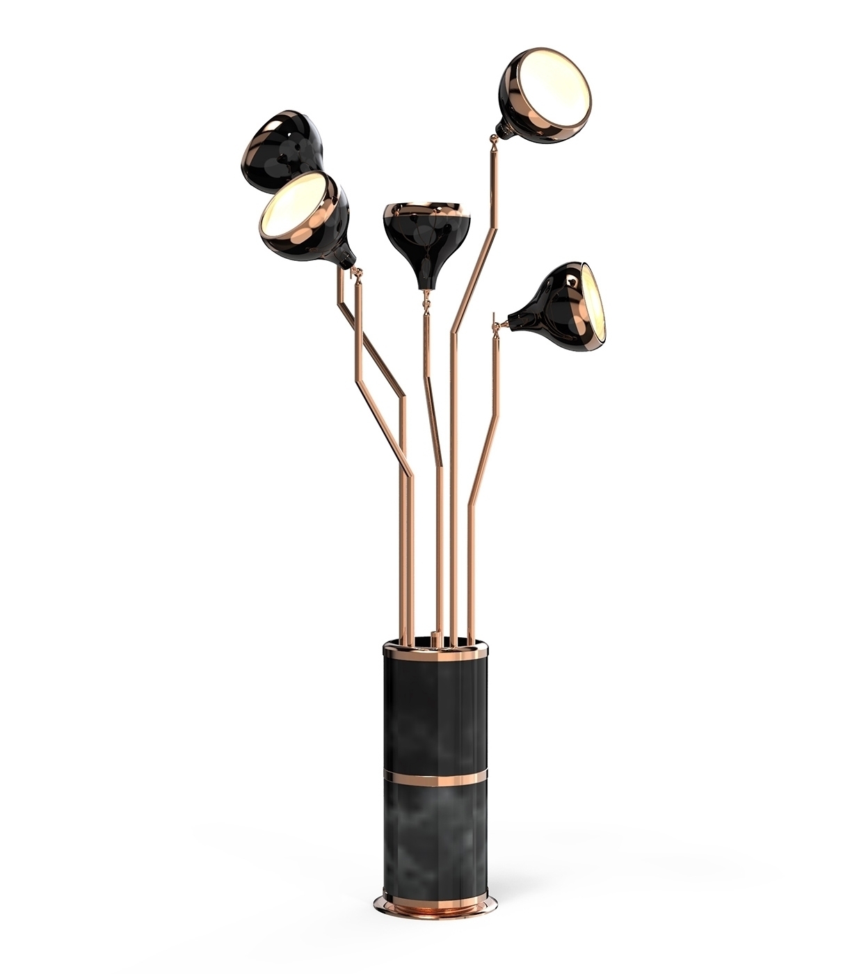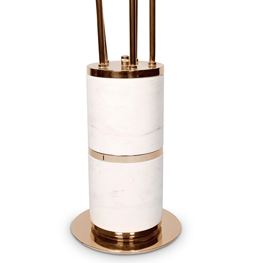 Напольный светильник Hanna от португальского бренда Delightfull выполнен в роскошном винтажном стиле и идеально подойдет для гостиной или холла. Вдохновением для создания этого светильника стало творчество американского джазового барабанщика Джейка Ханна (Jake Hanna) – неслучайно плафоны светильника Hannaпо форме напоминают барабаны. Основание светильника изготовлено из благородного мрамора, что добавляет его образу классические черты и делает его ближе к стилю арт-деко. Алюминиевые плафоны, изготовленные при помощи стариной техники давильной обработки металла, крепятся к медным направляющим при помощи шарнира, который позволяет изменять угол их наклона. Корпус и плафоны светильника покрыты позолотой. Чтобы дать возможность оформить интерьер в едином стиле, в дополнение к напольному светильнику Hanna от Delightfull была создана одноименная люстра. Напольный светильник Hanna, как и другие светильники Delightfull, собирается вручную из материалов и комплектующих самого высокого качества и доступен в разных цветах и вариантах отделки.