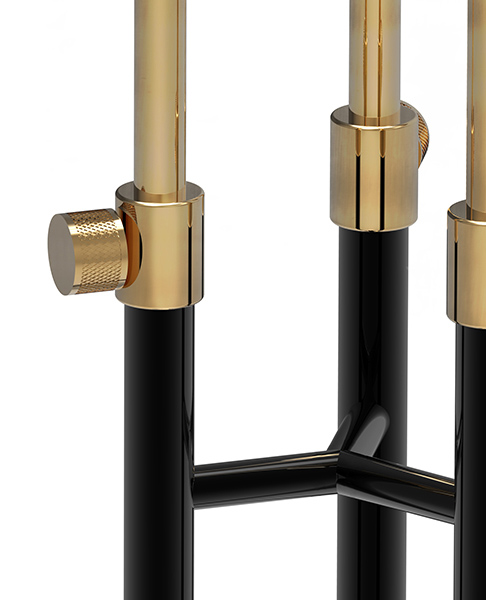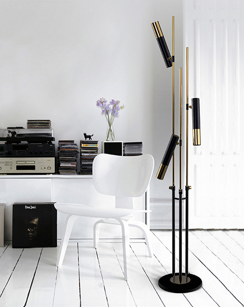 Напольный светильник Ike от португальской компании Delightfull появился на свет как результат сотрудничества команды Delightfull и дизайнеров из Нидерландов. Напольный светильник Ike отличается нестандартным расположением основных элементов его конструкции, четкими линиями и контрастным сочетанием позолоты и черного цвета. Каркас этого светильника изготовлен из меди и покрыт позолотой. Плафоны, по форме напоминающие микрофоны, изготовлены из алюминия. На нашем сайте Вы также можете найти люстру Ike от Delightfull, выполненную в том же уникальном стиле. Все светильники Delightfull изготавливаются вручную из материалов и комплектующих самого высокого качества и доступны в разных цветах и вариантах отделки.