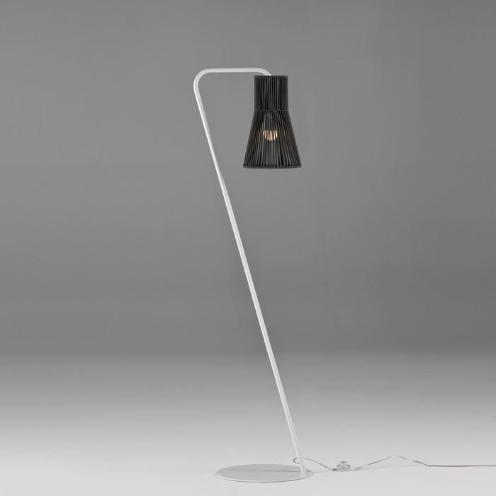 Напольный светильник с абажуром диаметром 24 см из сплетенного вручную шнура, изготовленного из переработанных пластиковых бутылок , доступен в широкой цветовой гамме.