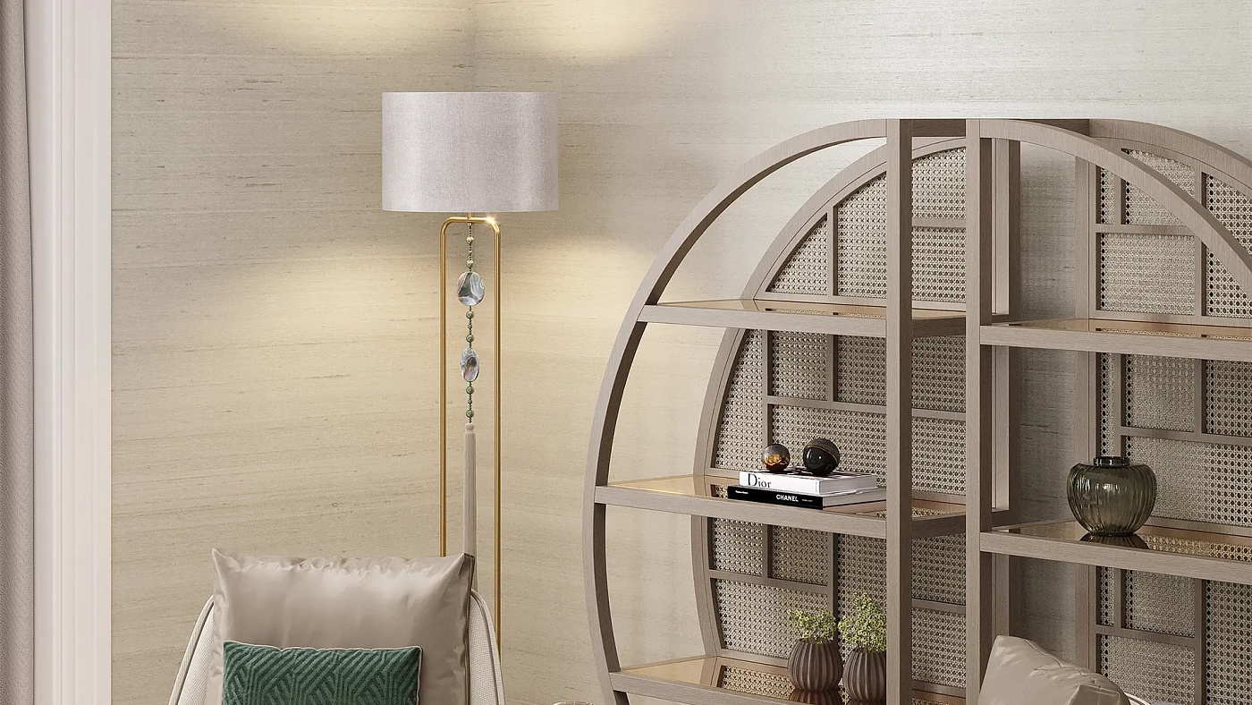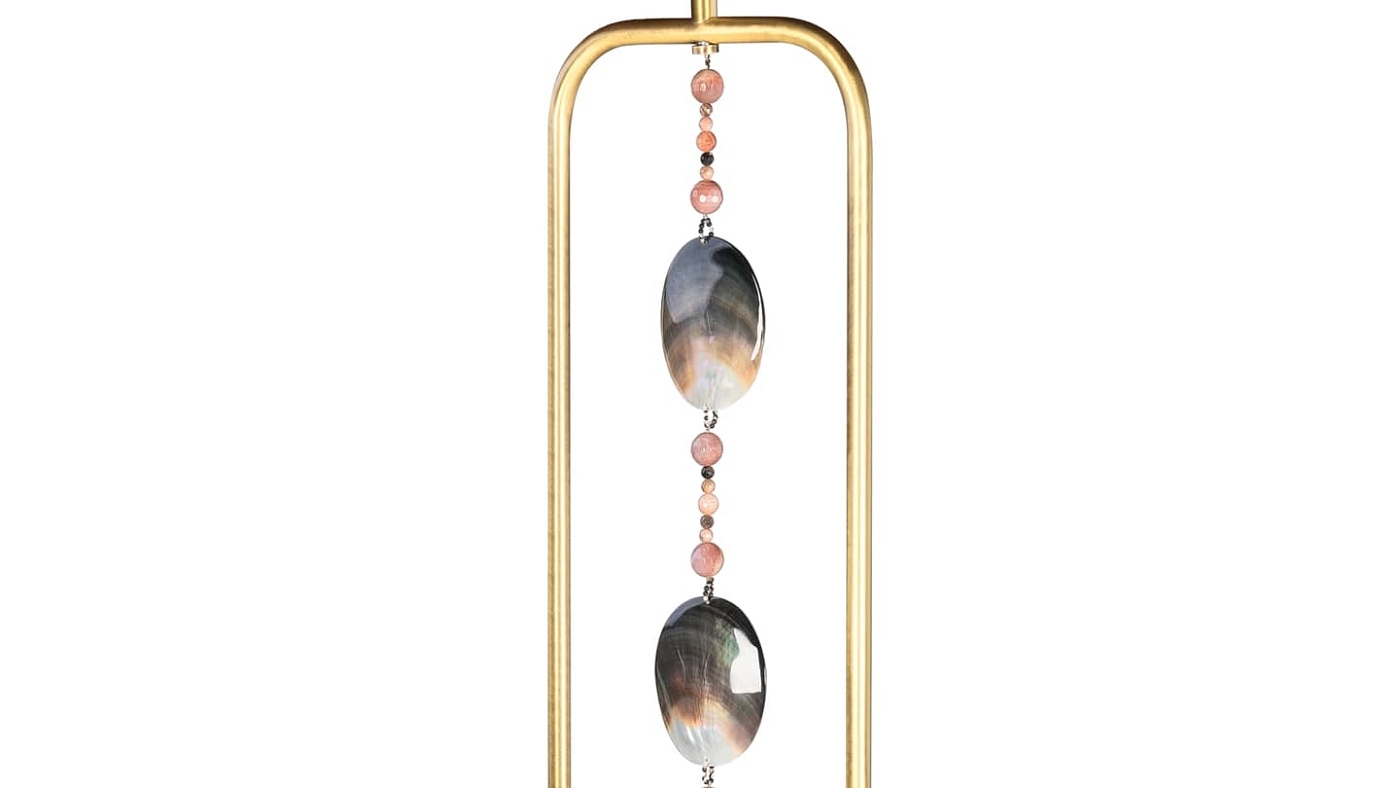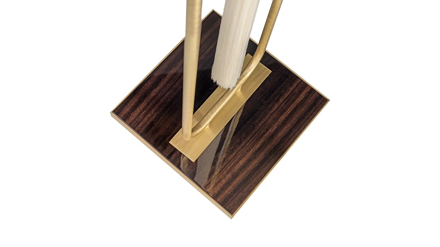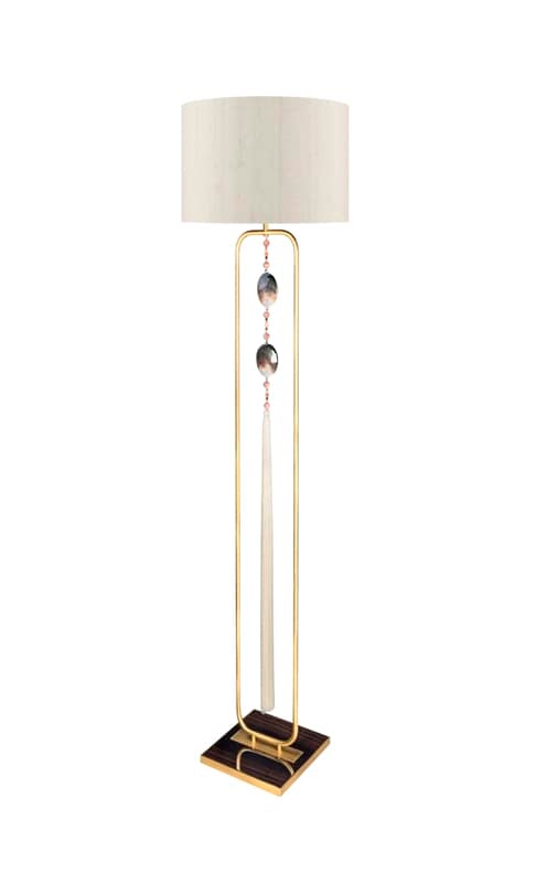 Лаосский торшер передает интернациональный колорит благодаря своей подвеске с кисточкой. Это дополняет оттенок барабана из двойного шелка и придает декоративный оттенок раме из матовой латуни design и опорной плите из деревянного шпона.