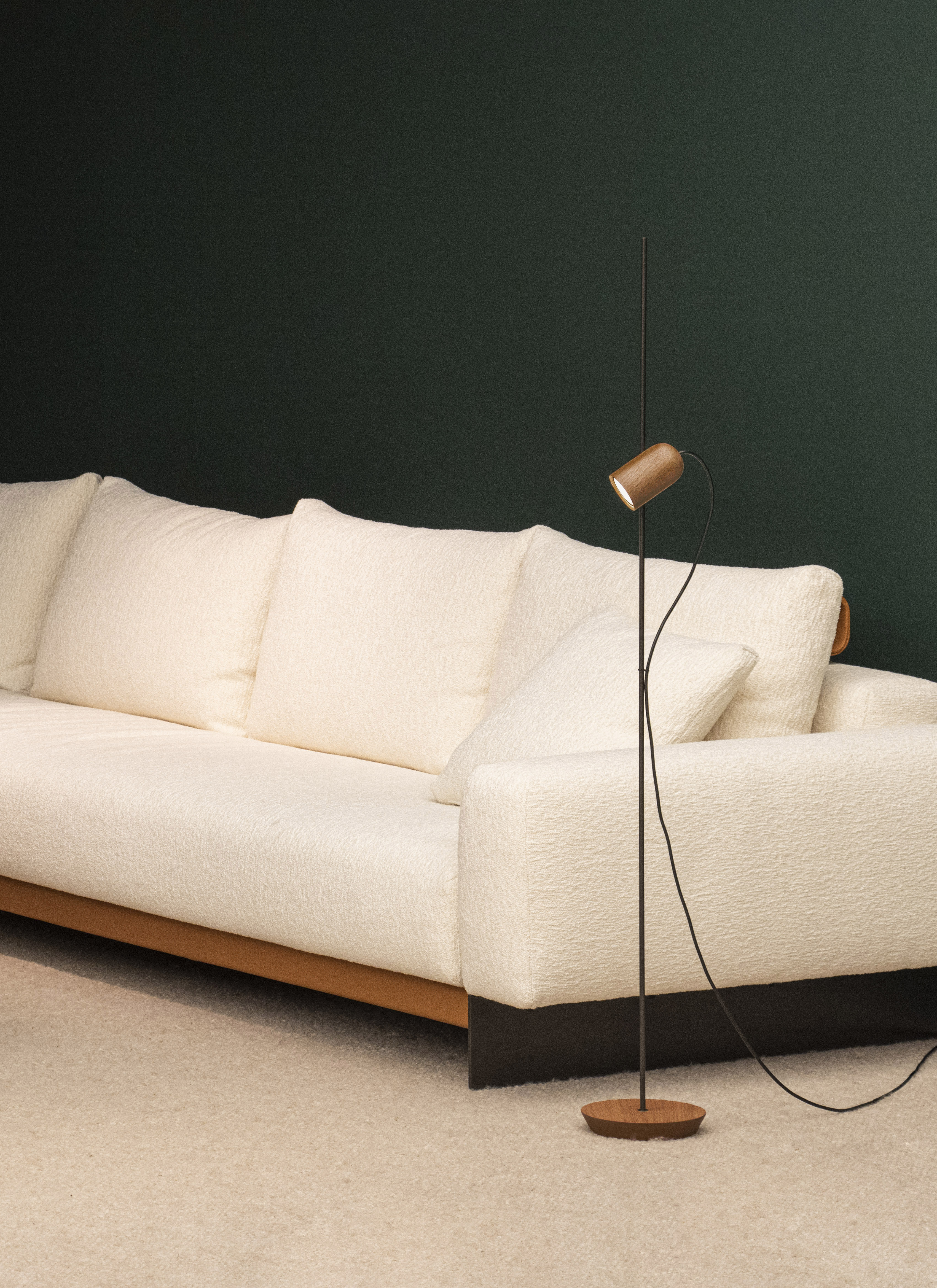 Элегантный торшер, сочетающий в себе теплоту дерева и изысканность металла. Изысканно простой дизайн. Этот дизайн сочетает в себе металлический корпус с латунной или графитовой отделкой, точечный светильник и основание из дерева грецкого ореха, дуба или черного ясеня, материала, подчеркивающего естественность и теплоту света. Лампа воплощает в себе оригинальную идею на основе магнита, которая позволяет легко фокусировать и направлять свет.