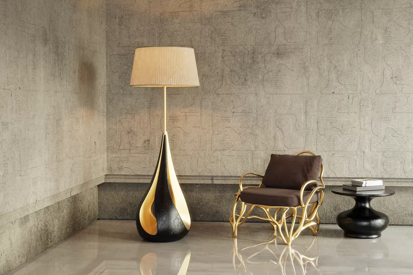 Гладкий и современный силуэт, который добавит элегантности любой комнате. Его бронзовая отделка и светодиодное освещение создают уютную атмосферу, а скульптурная форма лампы сама по себе делает ее ярким произведением искусства.