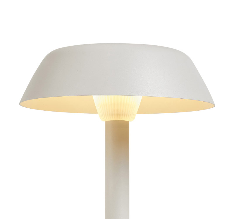 С помощью этого дизайна Ксавье Соле хотел по-новому интерпретировать классические лампы накаливания в ограниченном пространстве, объединив два типа настольных ламп в одну. С одной стороны, это лампы с абажуром, а с другой — лампы со стеклянным абажуром, которые представляют собой элегантный, сдержанный и строгий результат слияния этих двух концепций. Размеры центральной трубки позволяют использовать ее в качестве стабильного и безопасного источника освещения в сфере гостеприимства. Эти качества можно оценить как в различных общественных местах, так и в домах. Светодиоды, встроенные в абажур, создают контрастное освещение. Все элементы изделия производятся на месте, и для крупных проектов возможна отделка различными цветами.