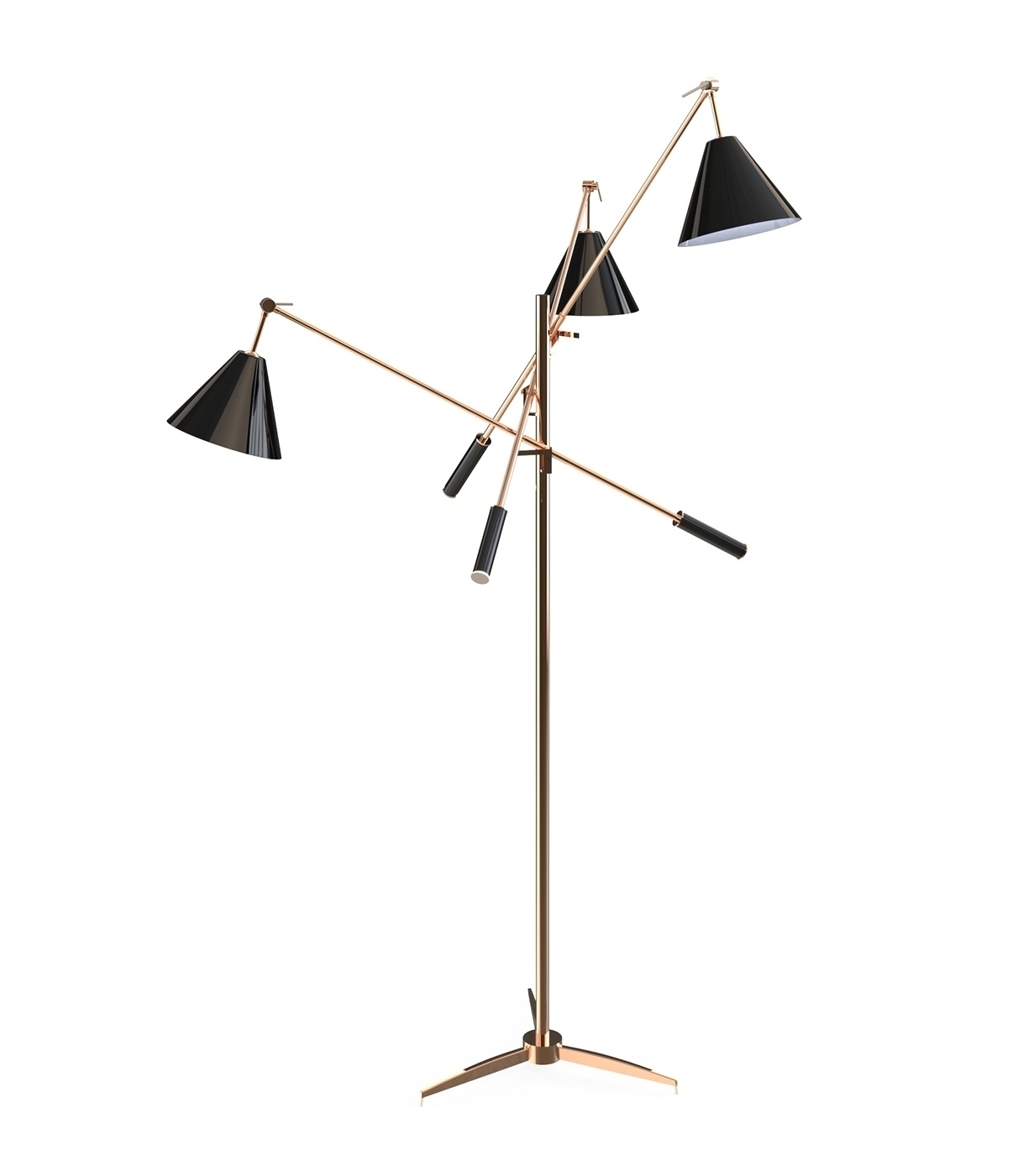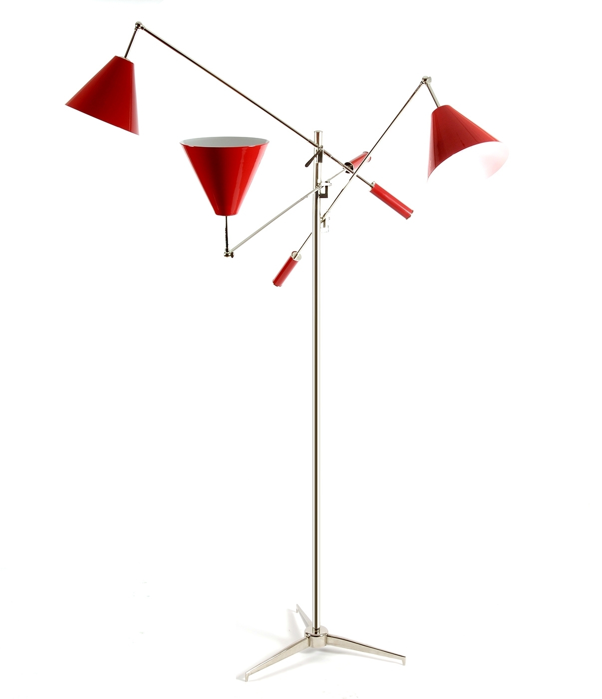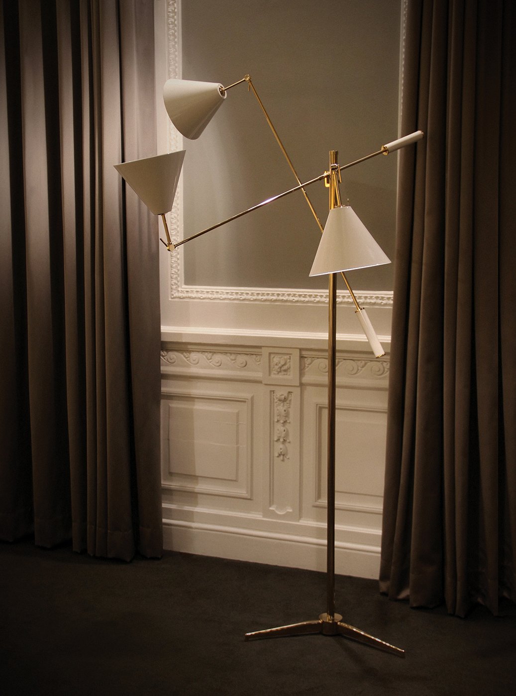 Напольный светильник Sinatra от португальского производителя элитного света компании Delightfull отличается практичностью и оригинальным дизайном. Именно так выглядели светильники в 50-х годах прошлого столетия. Ни один напольный светильник в стиле ретро еще никогда не казался таким современным! Его Каркас изготовлен из меди, а плафоны – из алюминия. Высоту и угол наклона каждого плафона легко регулировать. В дополнение к напольному светильнику Sinatra от Delightfull на нашем сайте Вы можете также купить люстру Sinatra, выполненную в том же стиле. Все светильники и люстры Delightfull изготавливаются по индивидуальным проектам, всегда только вручную и доступны в разных цветах и вариантах отделки.