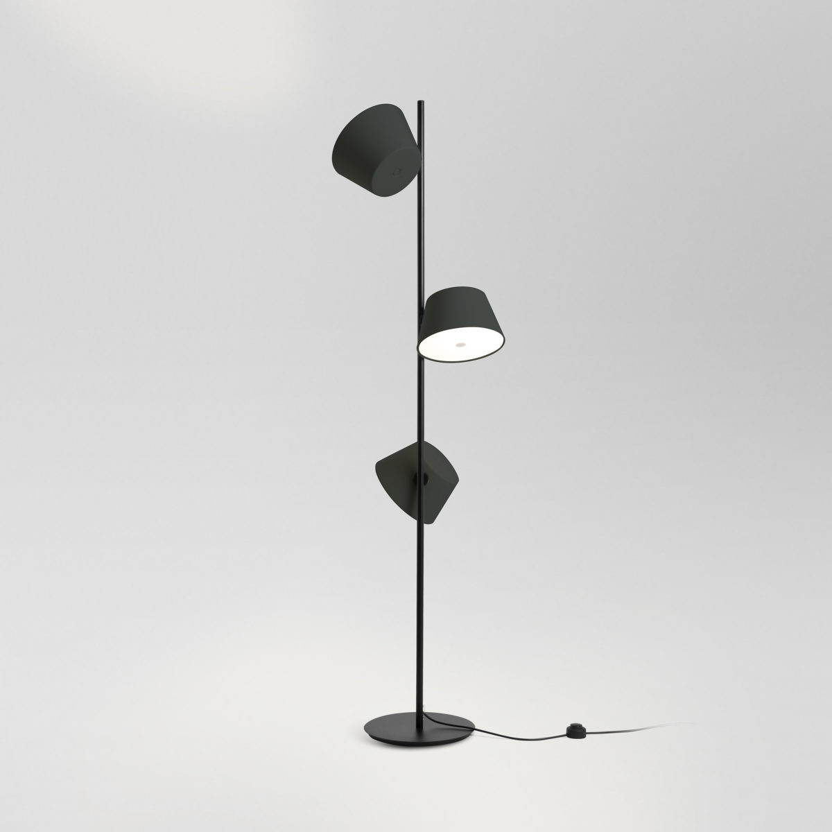 Новинка 2015 от Фабьена Дюма приглашает насладиться комфортом использования: свободно вращайте абажуры, максимально точно настраивая освещение в комнате. Три ярких “там-тама” выполнены из алюминия и, по вашему усмотрению, могут быть окрашены в чёрный, белый, песочный, оранжевый, коричневый, зелёный или синий. Вы можете выбирать любые из этих оттенков в привлекательной для вас комбинации. “Стебель” торшера Tam Tam всегда выполнен в чёрном цвете.
