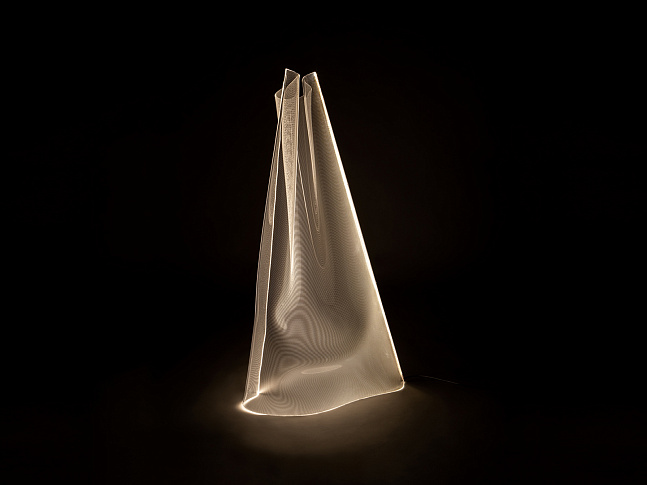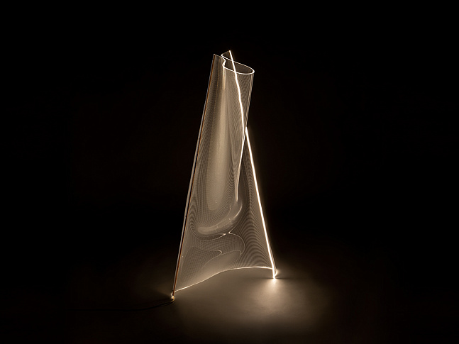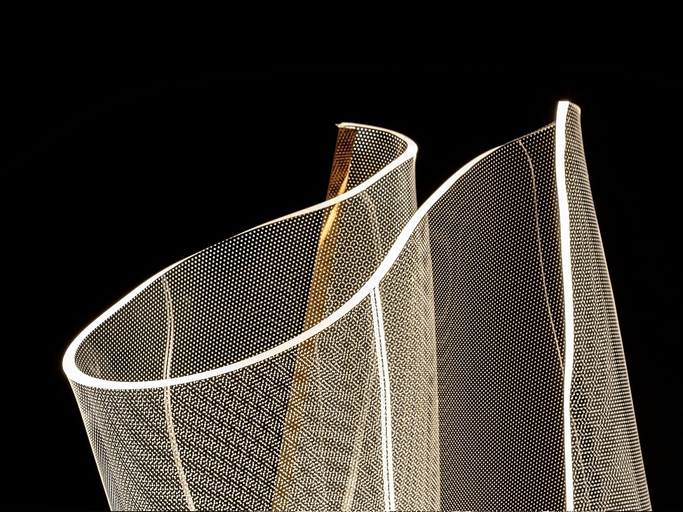 Торшер из листа формованного метакрилата с микропечатью и окантовкой из металла цвета "красное золото". 17W LED, 1564 Lm, 3000 K.