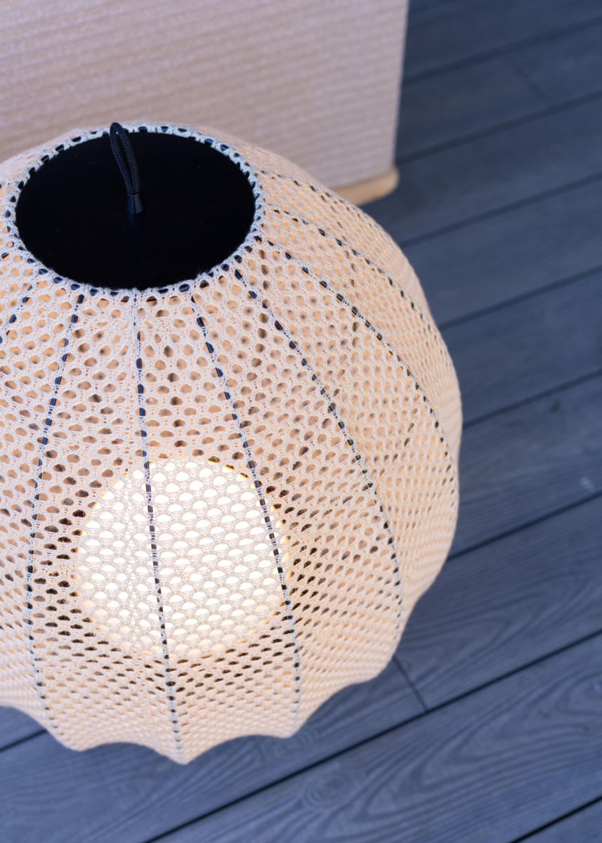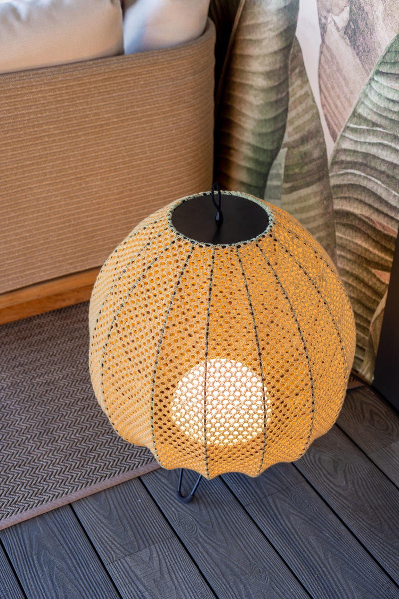 Бухта - это уникальное изделие, сочетающее в себе элегантность и функциональность. Его трикотажный абажур придает нотку изысканности, а 100% акриловая пряжа, подходящая для использования на открытом воздухе, гарантирует долговечность и прочность. Эта пряжа, окрашенная в массовом порядке и обладающая АНТИУФ-свойствами, обеспечивает быстрое высыхание, что делает ее идеальной для использования на открытом воздухе. Экран легко заменяется и прост в обслуживании, что позволяет его мыть при необходимости. Металлическая конструкция черного цвета специально обработана, чтобы выдерживать внешние условия. Cala pie оснащена светодиодной системой освещения с регулируемой яркостью по технологии TRIAC, покрытой полусферическим рассеивателем из опалметакрилата. Кроме того, его конструкция включает в себя черную акриловую ручку на шнурке сверху, которая облегчает переноску.