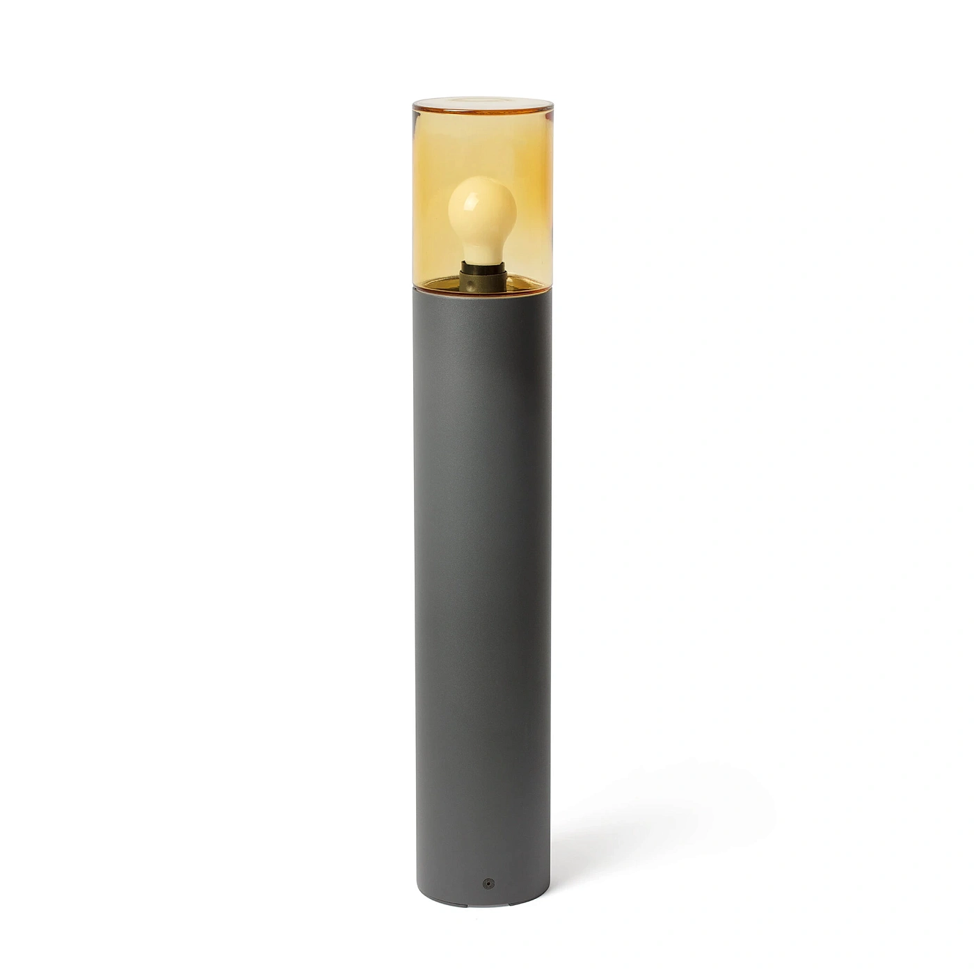 KILA — это коллекция наружного освещения из алюминия и стекла. Его дизайн идеально отделяет серую структуру полупрозрачного рассеивателя, позволяет видеть лампочку. Эта темно-янтарно-серая лампа-маяк идеально подходит для декоративного освещения садов. версия 70 см.