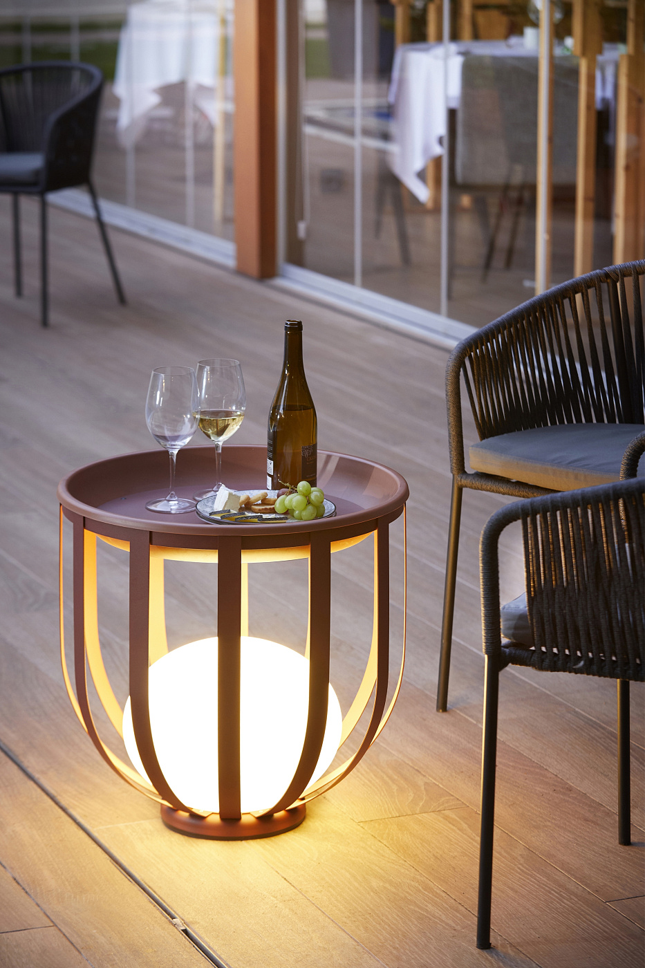 Трансформируемые элементы, которые можно подвешивать к потолку или обеспечивать окружающее освещение поместив их в открытые металлические корзины. В помещении и на открытом воздухе корзины можно настроить с помощью комплектов, которые позволяют использовать их в качестве столов или цветочных горшков.
