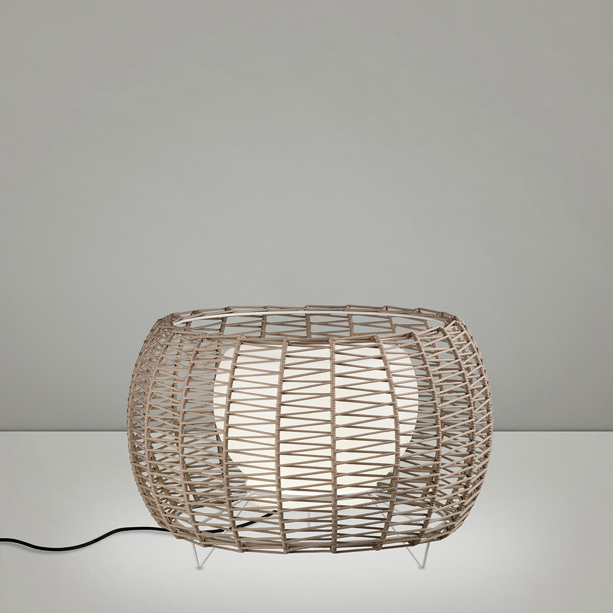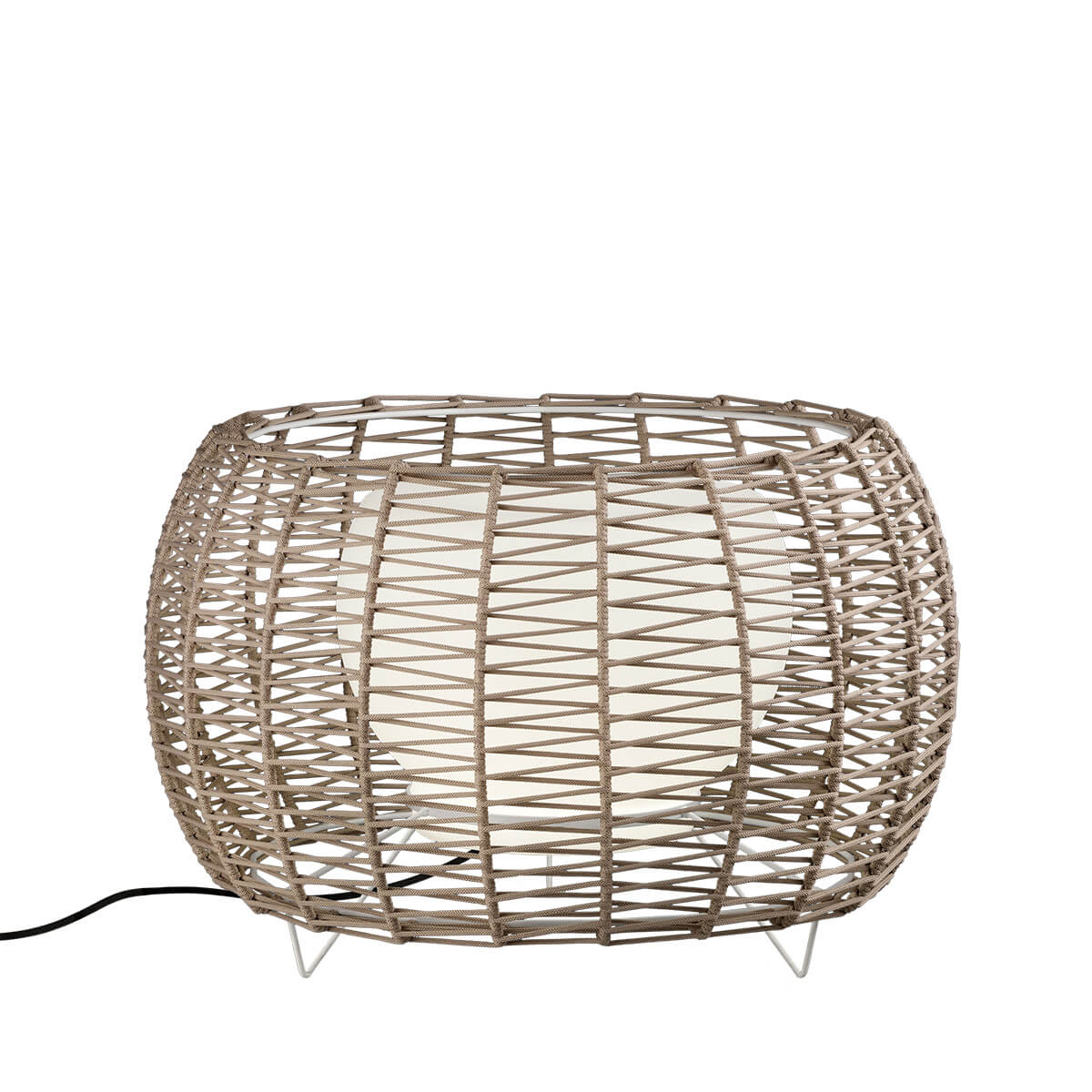 Торшер с абажуром Ø75 см из плетеного вручную шнура из переработанных пластиковых бутылок в оригинальной зигзагообразной технике. IP66 для использования на открытом воздухе.