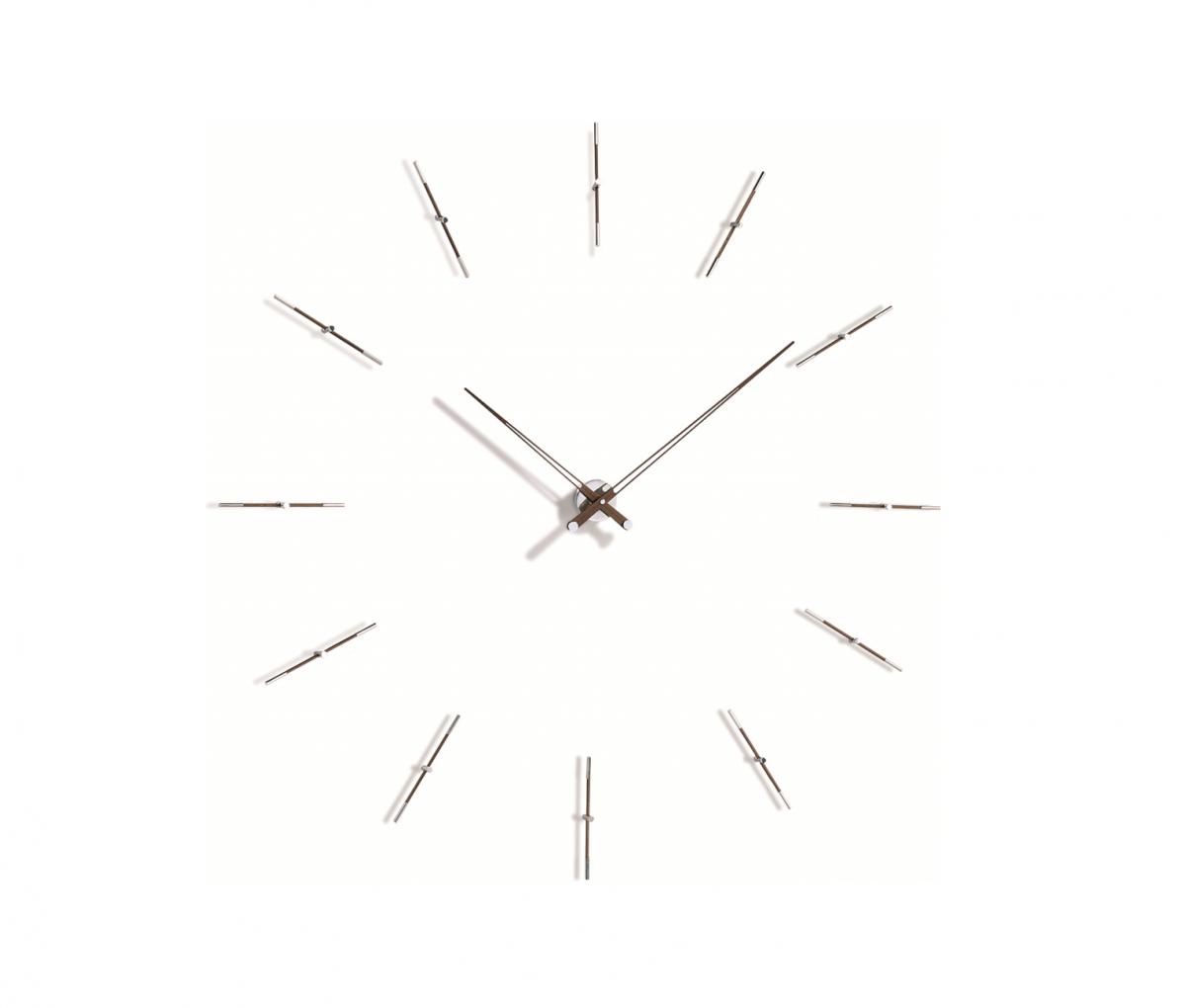 Дизайнерские настенные часы Merlin N от испанского бренда Nomon отличаются минималистическим дизайном, благодаря которому могут быть использованы в интерьерах, как жилых, так и офисных помещений. Стрелки часов и деления циферблата изготовлены из массива ореха и доступны в двух вариантах отделки – «орех» и «венге». Механизм часов помещен в корпус из хромированной стали. Часы Merlin N выпускаются в двух размерах – диаметром 125 и 155 см, каждый из которых доступен с 4 или 12 указателями времени. Немецкий кварцевый механизм UTS обеспечивает часам бесшумную работу и безупречную точность. Купить дизайнерские настенные часы Merlin N от бренда Nomon Вы можете на нашем сайте.