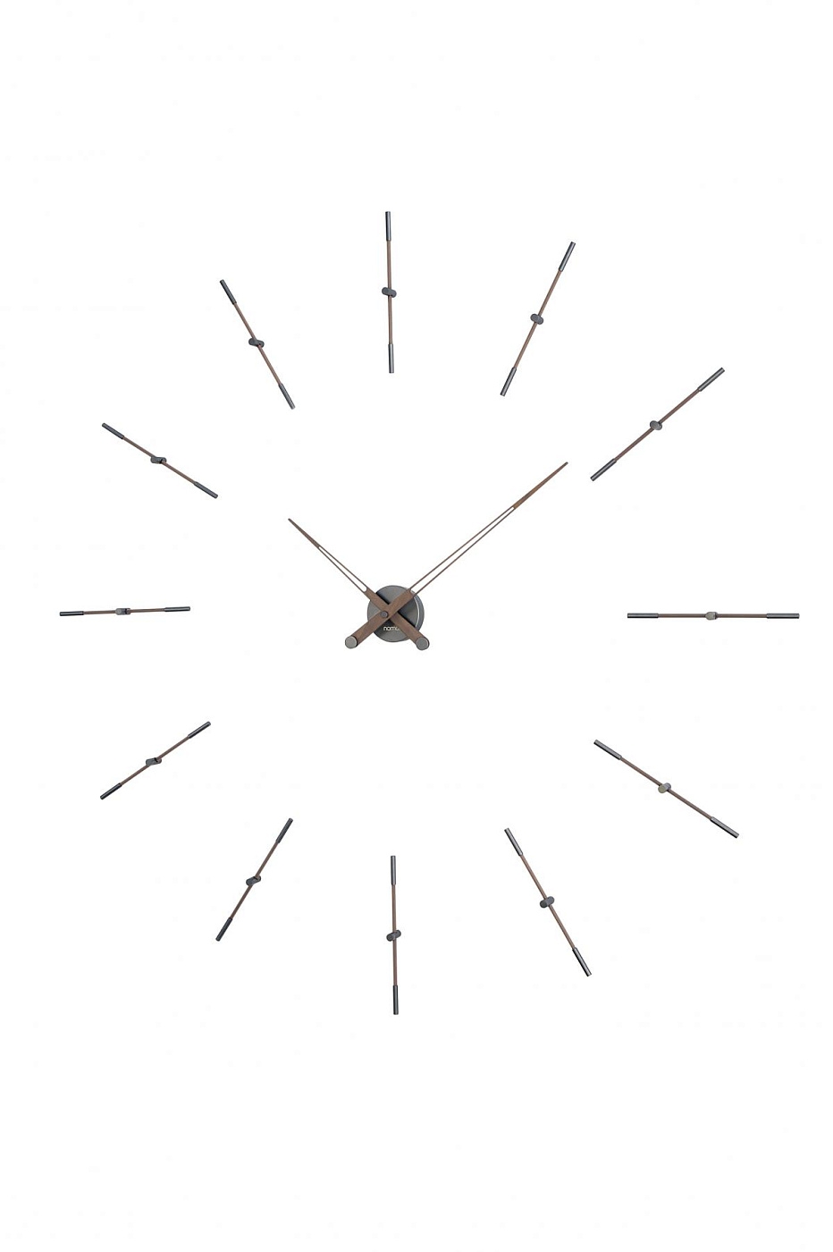Дизайнерские настенные часы Merlin T от испанского бренда Nomon отличаются минималистическим дизайном, благодаря которому могут быть использованы в интерьерах, как жилых, так и офисных помещений. Стрелки часов и деления циферблата изготовлены из массива ореха и стали. Механизм часов помещен в корпус из стали в графитовом цвете. Часы Merlin T выпускаются в двух размерах – диаметром 125 и 155 см, каждый из которых доступен с 4 или 12 указателями времени. Немецкий кварцевый механизм UTS обеспечивает часам бесшумную работу и безупречную точность. Купить дизайнерские настенные часы Merlin T от бренда Nomon Вы можете на нашем сайте.