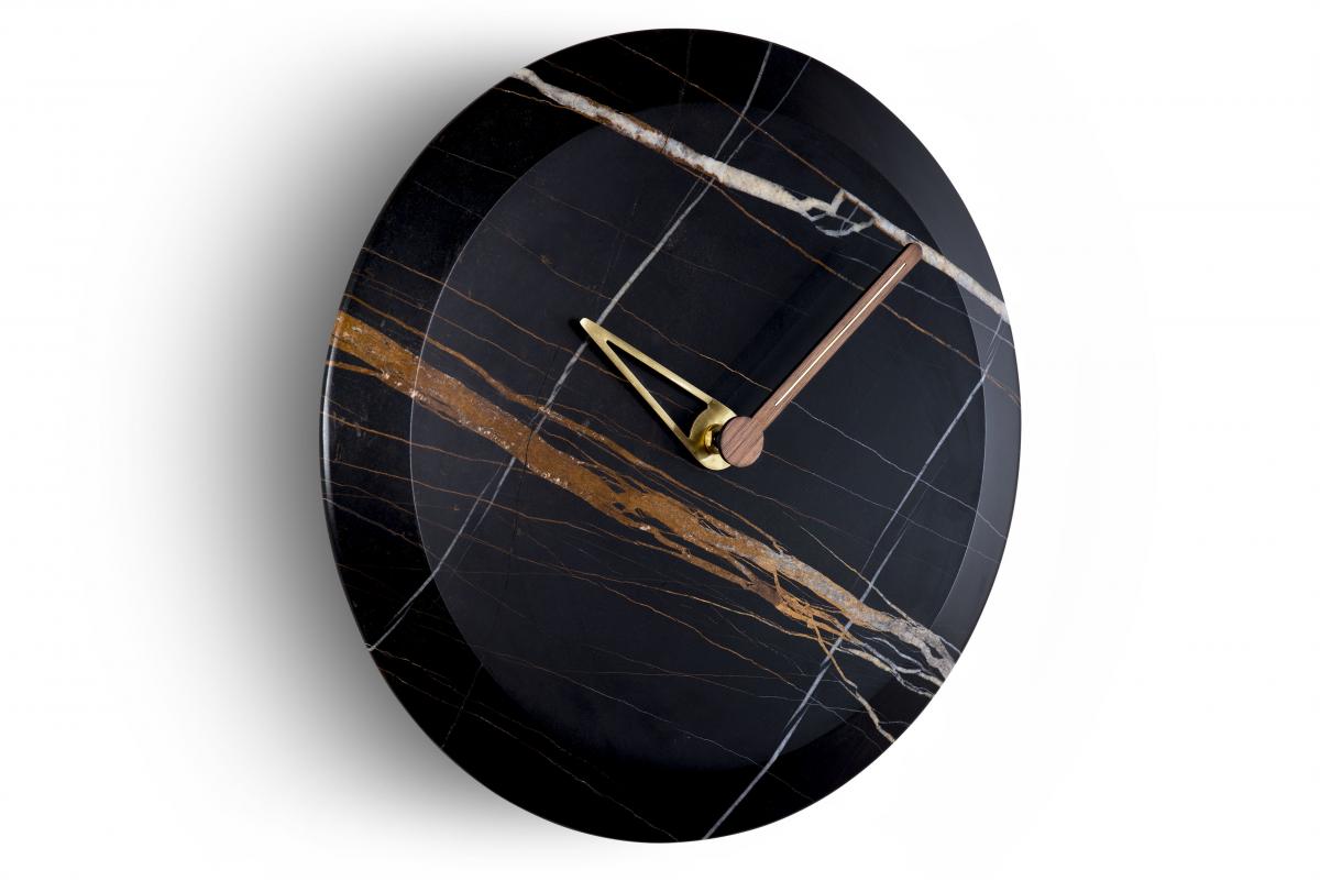 Настенные часы, выполненные из массива дерева, окрашенного в черный цвет и мраморной пластины цвета Sahara Noir.
