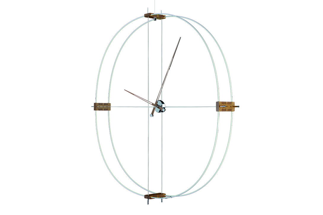 Хосе Мария Рейна приглашает вас насладиться новой концепцией измерения времени. Часы на стену Delmori отличаются интересным сочетанием материалов — металл, дерево, пластик — а их дизайн отсылает к урокам геометрии, на которых от циркуля и лекал всегда исходила какая-то магическая сила.